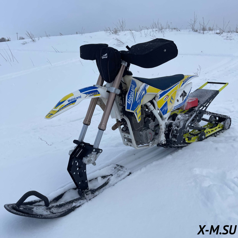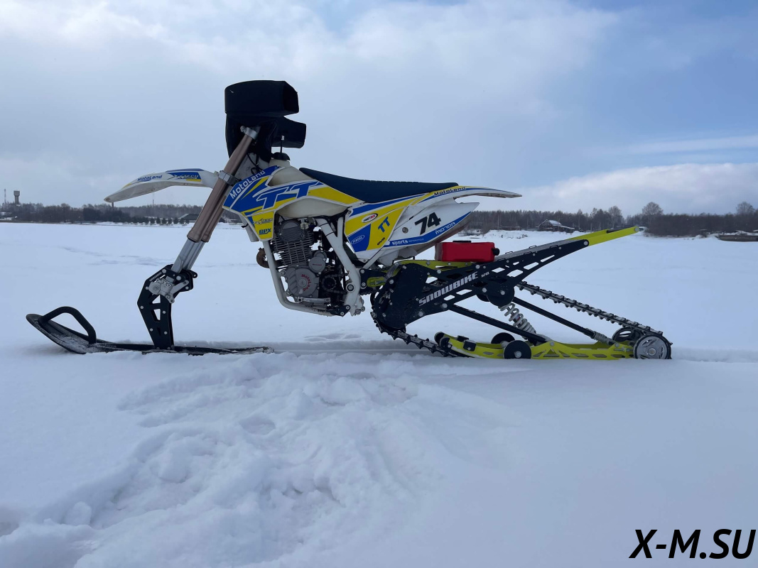 Folk 120 от Snowbike — универсальный гусеничный комплект для внедорожных мотоциклов. Гусеничный мотоцикл (СНОУБАЙК) это, по сути, одноколейный снегоход. Вы получаете возможность продлить мото сезон и эксплуатировать мотоцикл не только летом но и зимой.