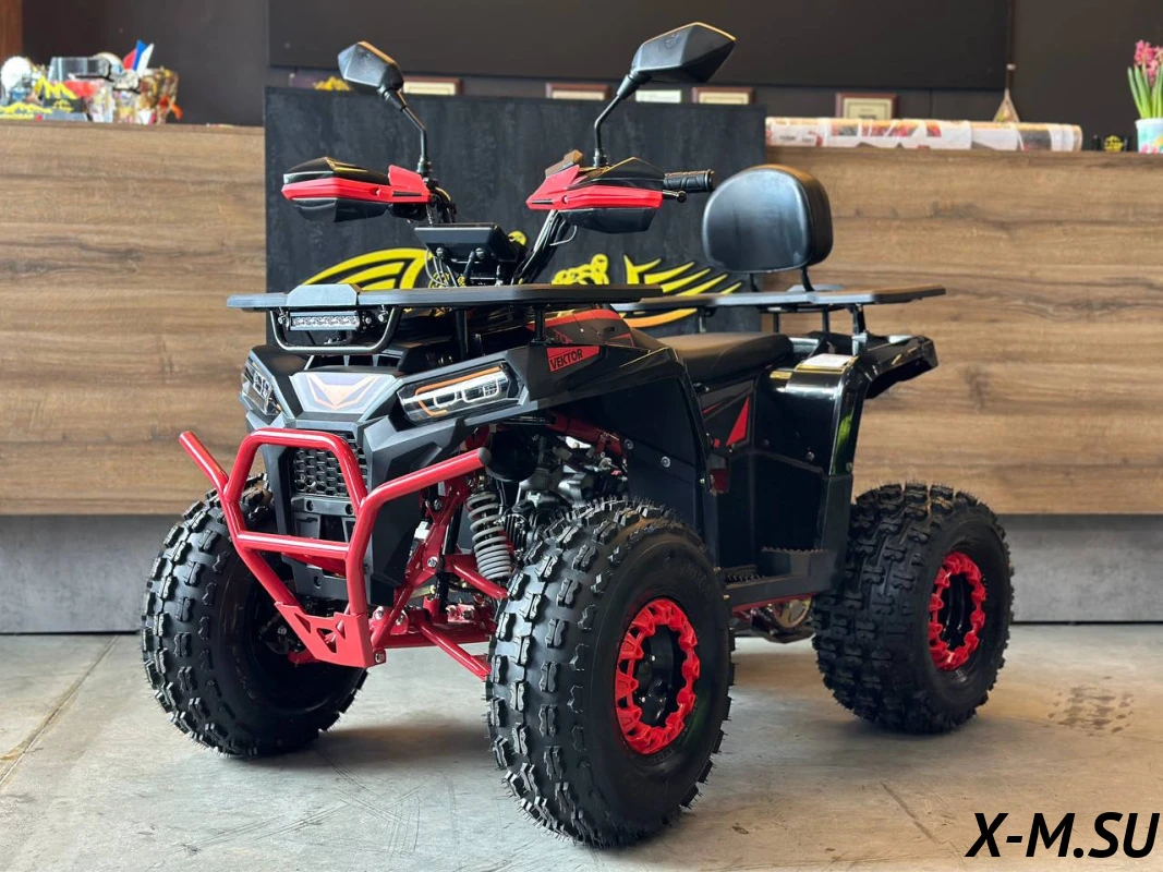 Квадроцикл YACOTA VEKTOR 125 LUX подойдет детям от 8-ми лет. Современный дизайн, простое управление, оптимальный набор опций. Квадрик оборудован четырехтактным двигателем 125 куб (автомат 1 ск.+реверс), мощностью 9 л.с. Трансмиссия - автоматическая. Запуск - электростартер. Данная модель комплектуется металлическими багажниками (спереди и сзади), светодиодной оптикой, поворотниками, зеркалами, защитой рук, подогревом ручек, спинкой для пассажира, электронной приборной панелью, клаксоном. Есть ограничитель скоростного режима. Разгоняется квадрик довольно быстро до максимальных 50 км/ч. Выдерживает нагрузку до 85 кг. У нас можно заказать бесплатную сборку.