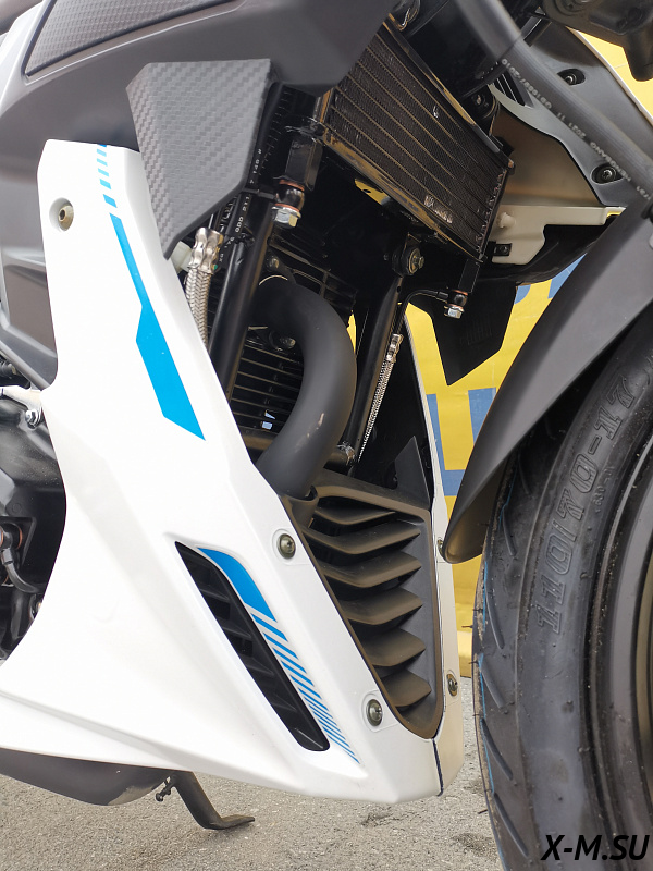 Хорошо подобранные покрышки на 17" ободах, 110/70 и130/70, обеспечивают отличное сцепление с дорожным покрытием.