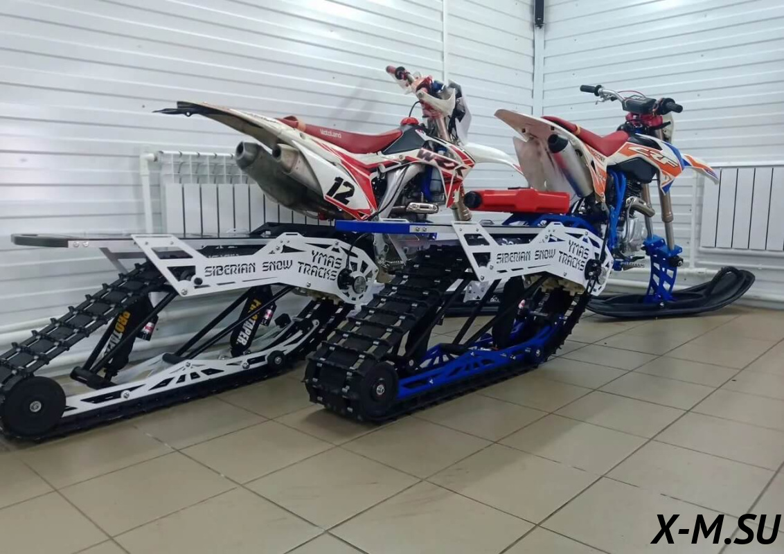 SiberianSnow от YmasTracks — универсальный гусеничный комплект для внедорожных мотоциклов. Гусеничный мотоцикл (СНОУБАЙК) это, по сути, одноколейный снегоход. Вы получаете возможность продлить мото сезон и эксплуатировать мотоцикл не только летом но и зимой.