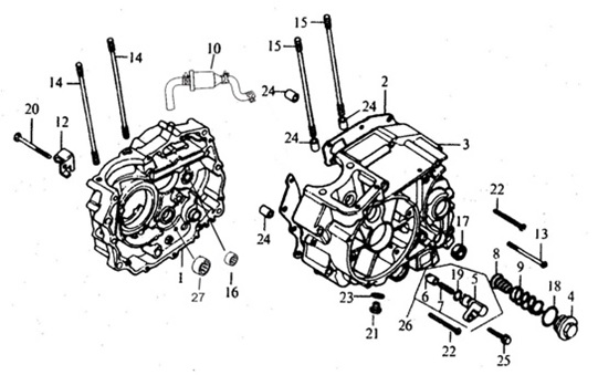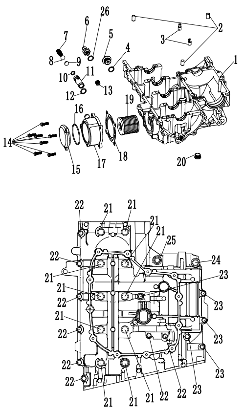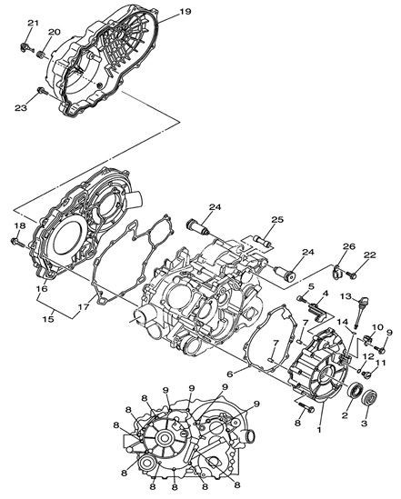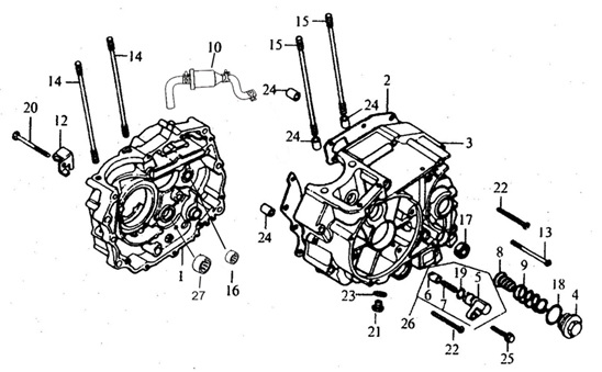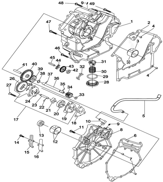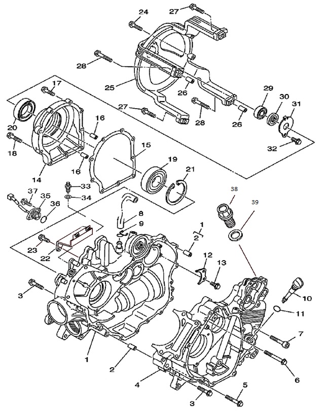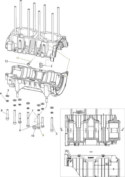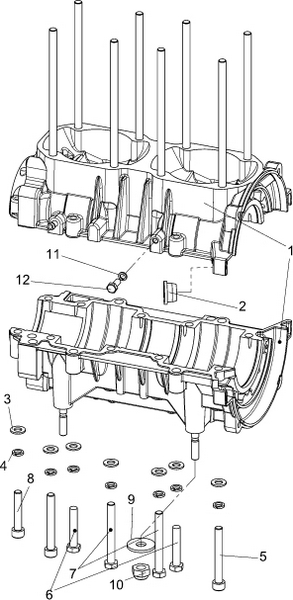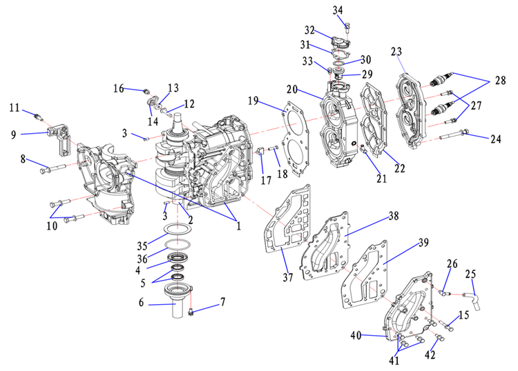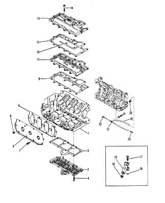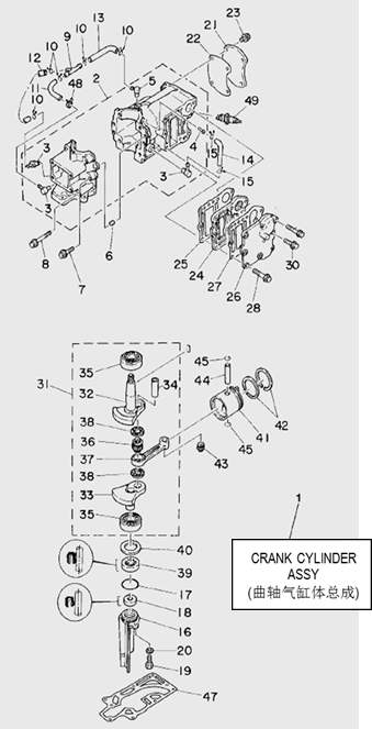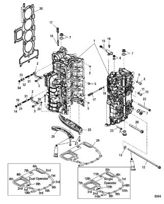 Блок цилиндров и картер (Часть 2) 2-Х ТАКТНОГО ПЛМ MERCURY 50EO Серийный номер от 9885345 до 9973099