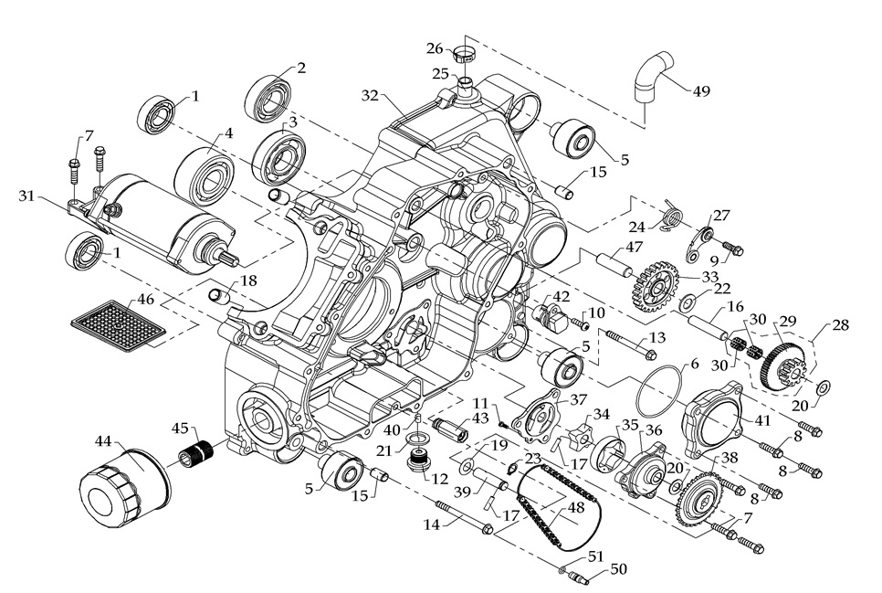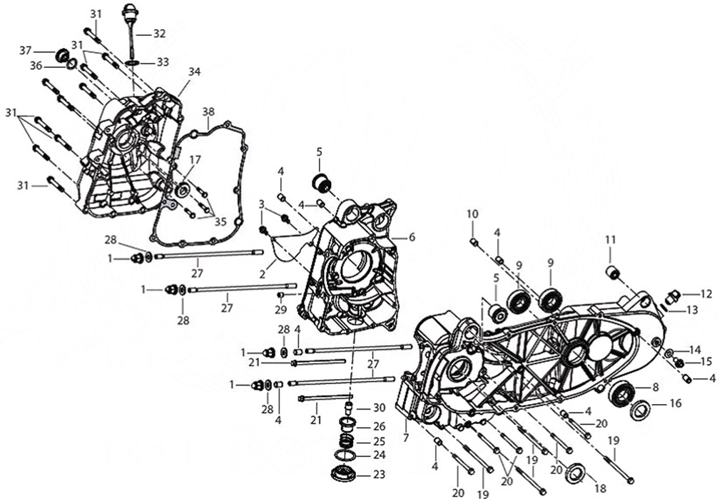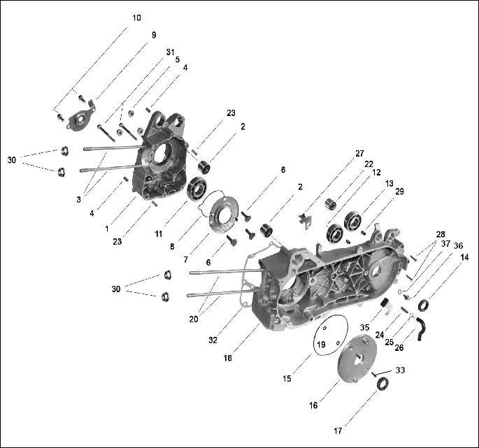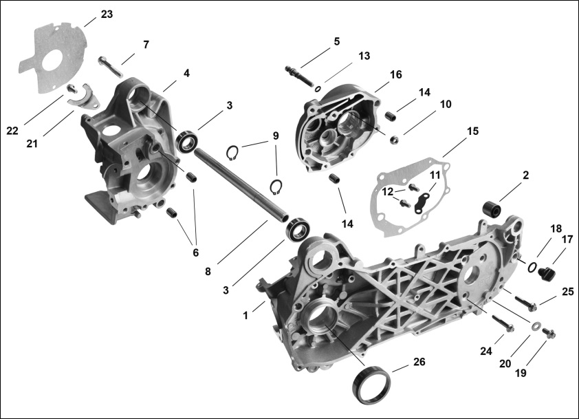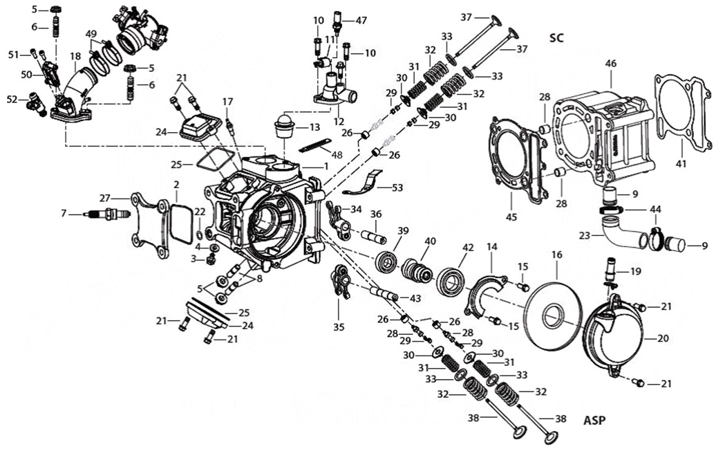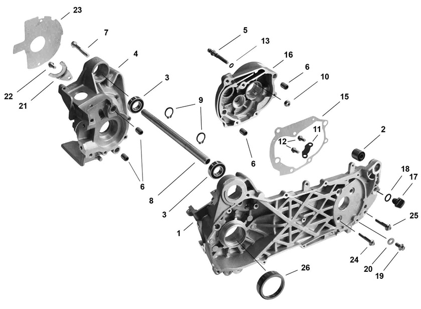 Блок цилиндров и картер (Часть 2) 2-Х ТАКТНОГО ПЛМ MERCURY 50EO Серийный номер от 9885345 до 9973099