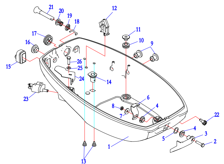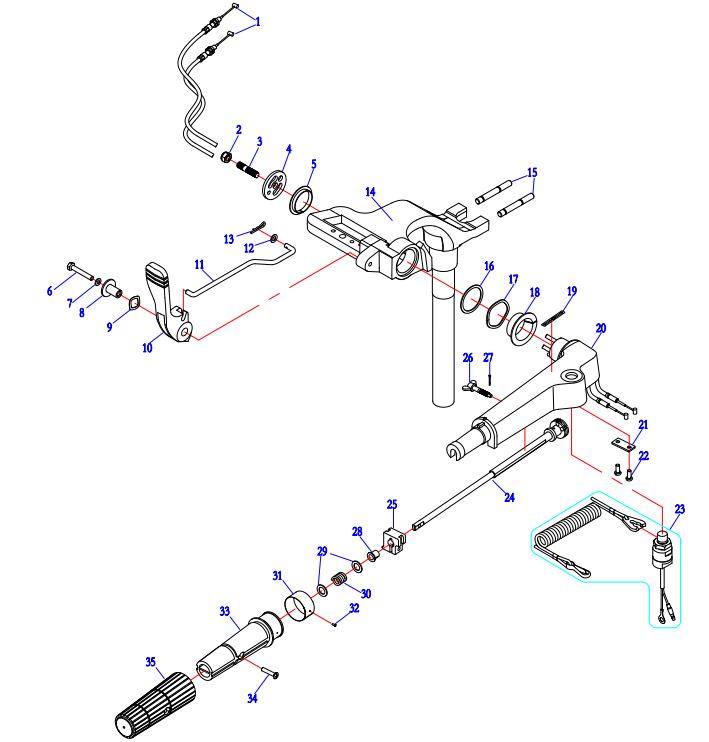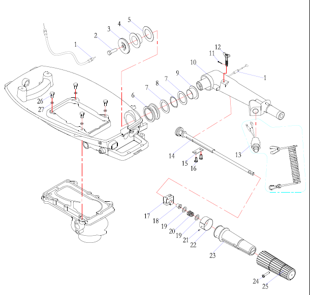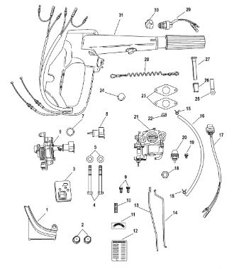 Дистанционное управление 2-Х ТАКТНОГО ПЛМ MERCURY 15 MH 294CC Серийный номер от 0N001590 до 0N055284