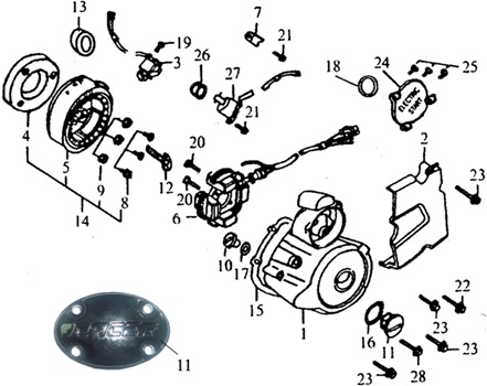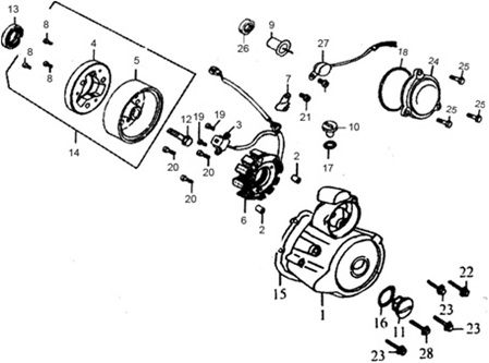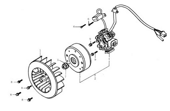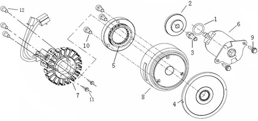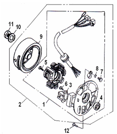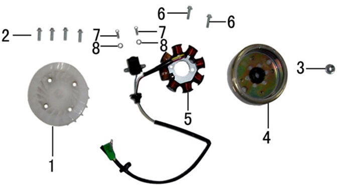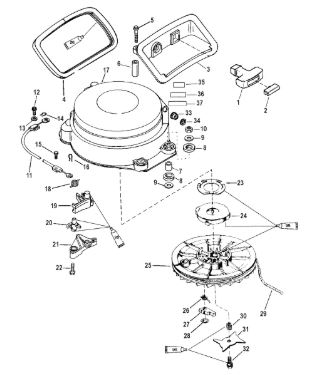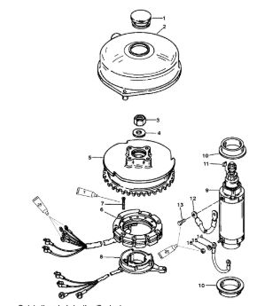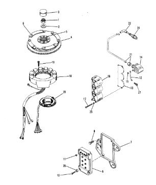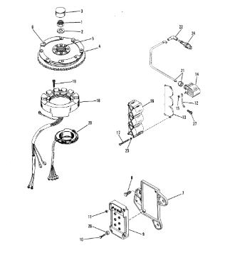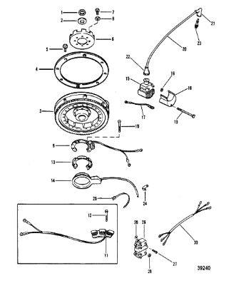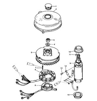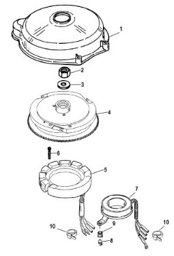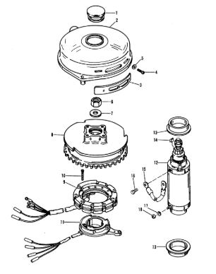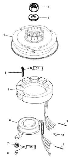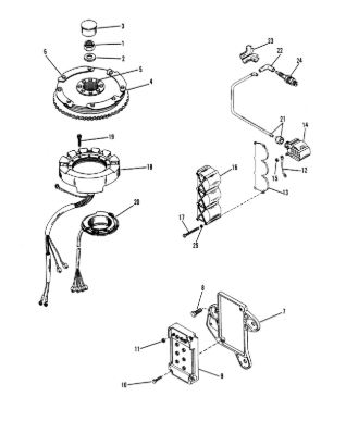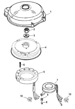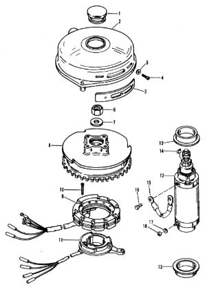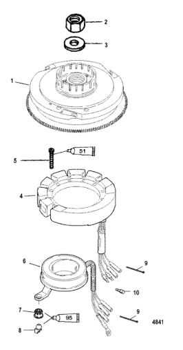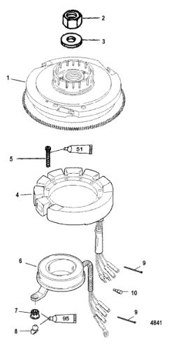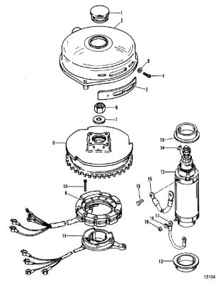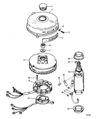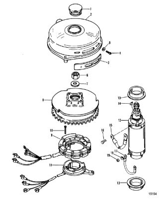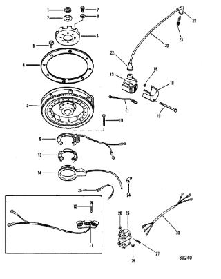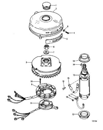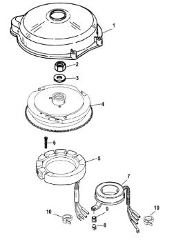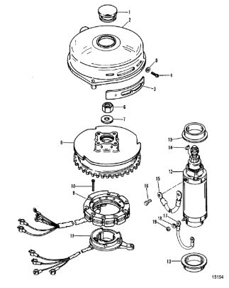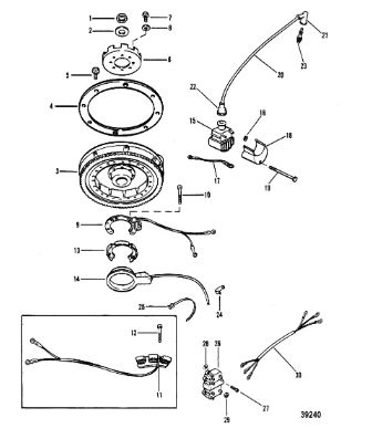 Маховик и статор (электрический) 2-Х ТАКТНОГО ПЛМ MERCURY 50EO Серийный номер от 9973100 до 0P016999