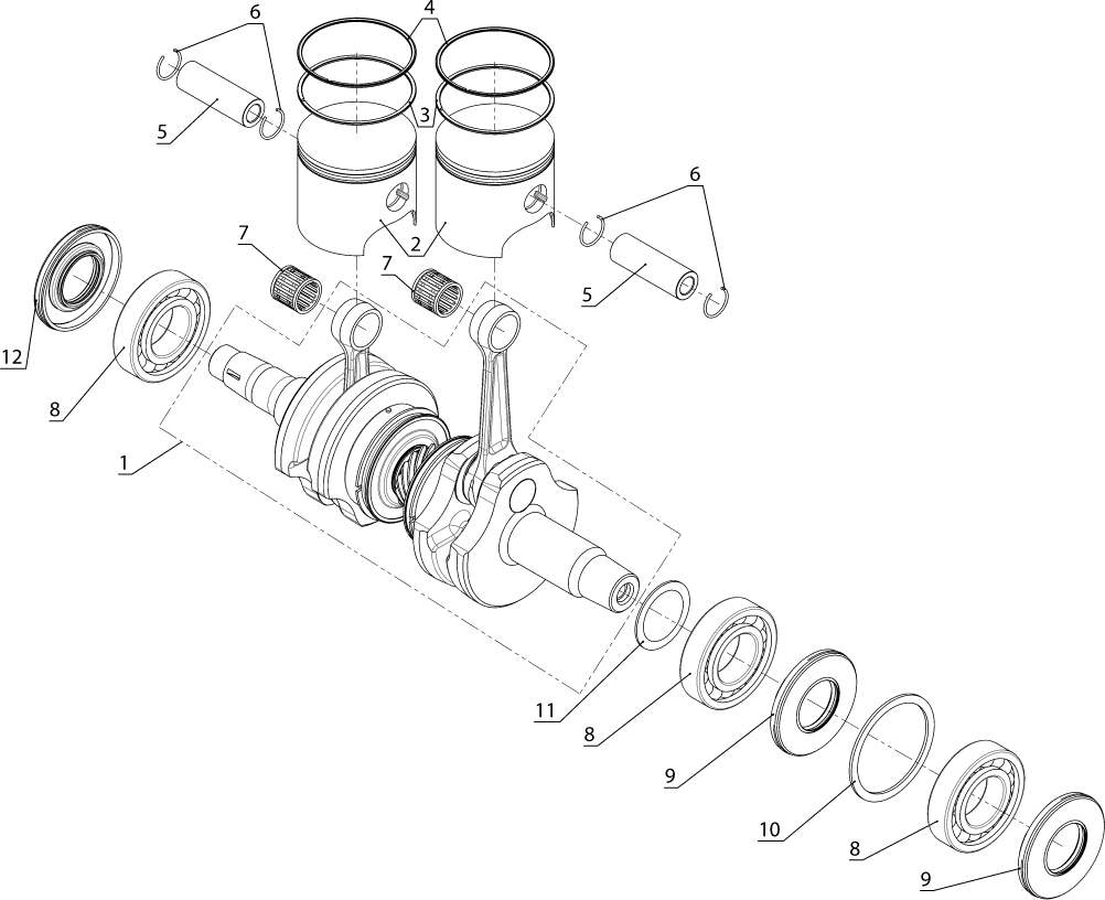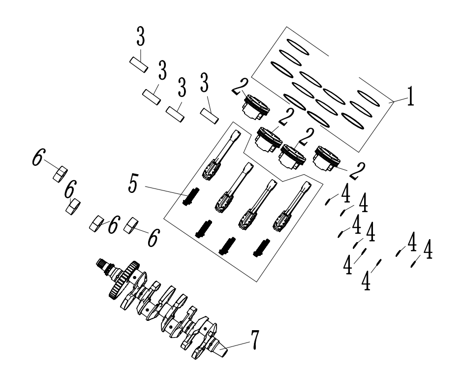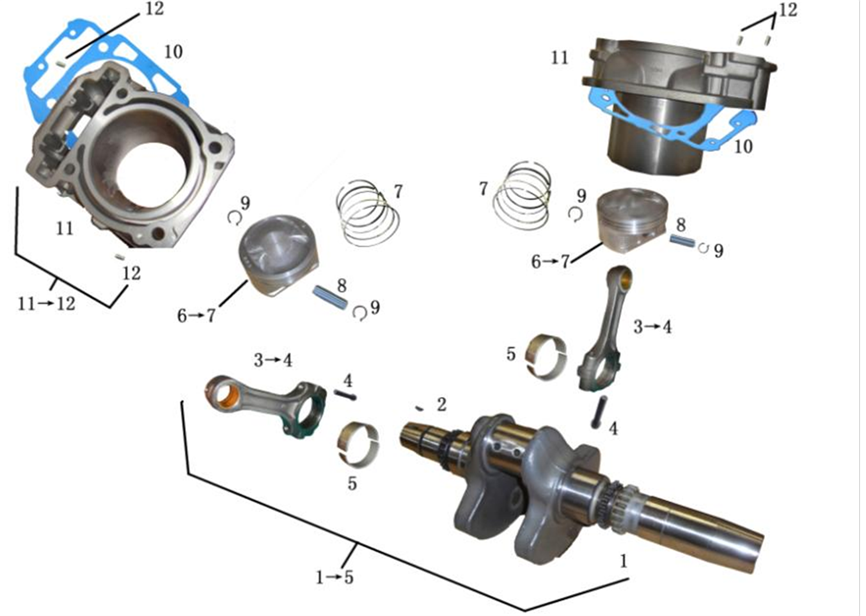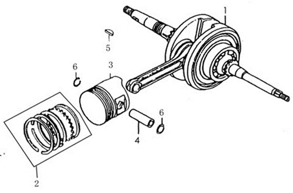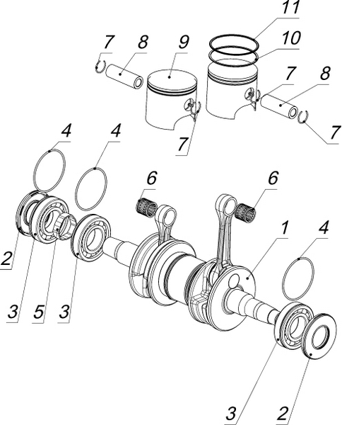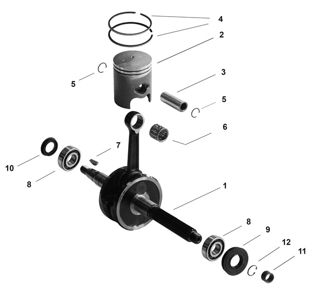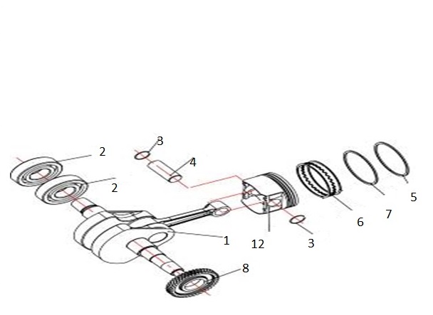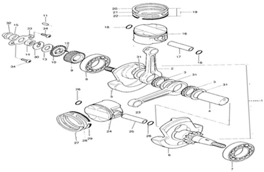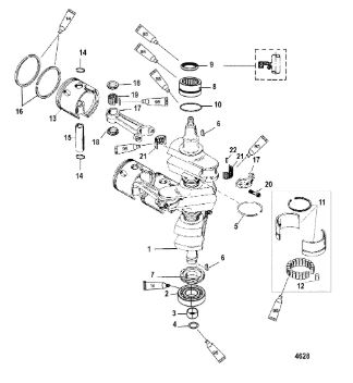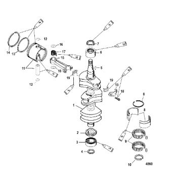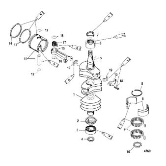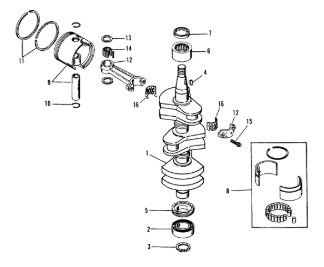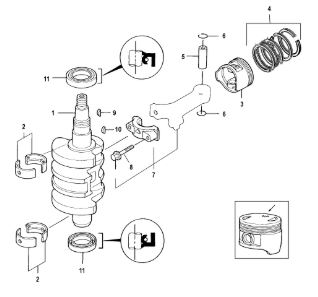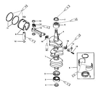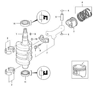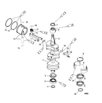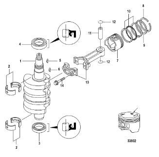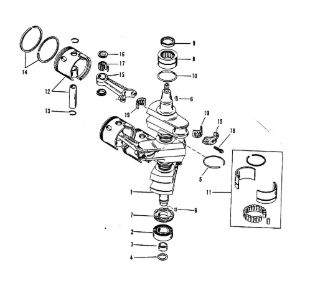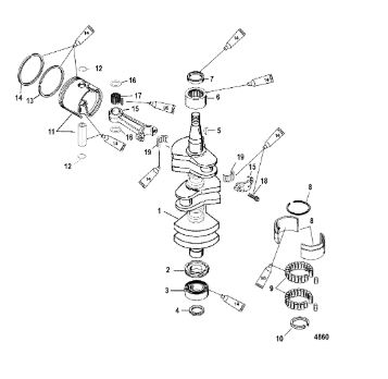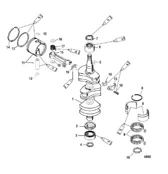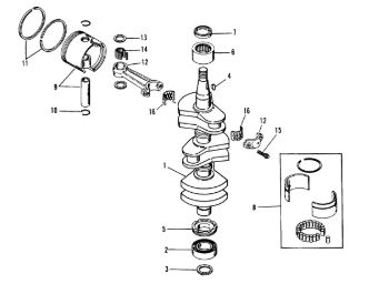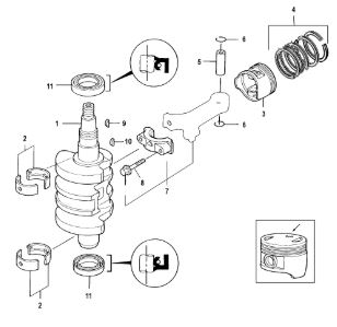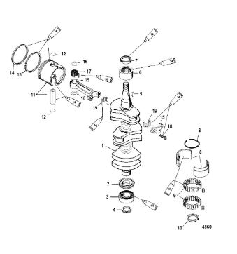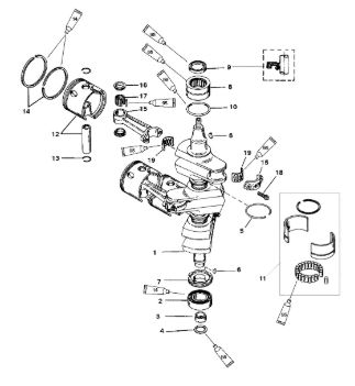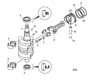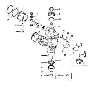 Коленчатый вал, поршни и шатуны 2-х тактного ПЛМ MERCURY 30 M Серийный номер от 0N001875 до 0N055504