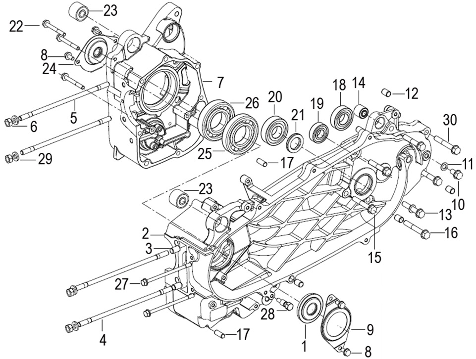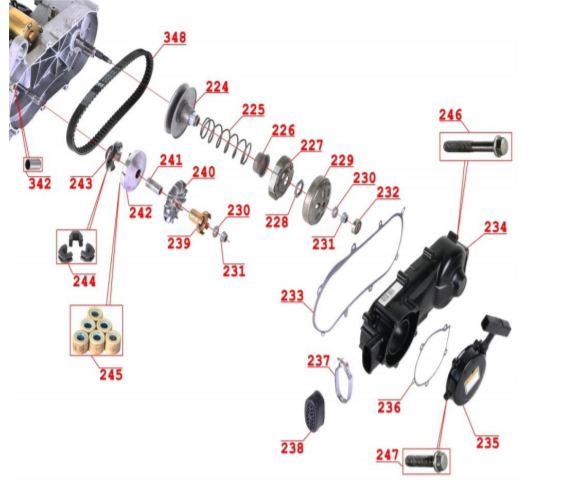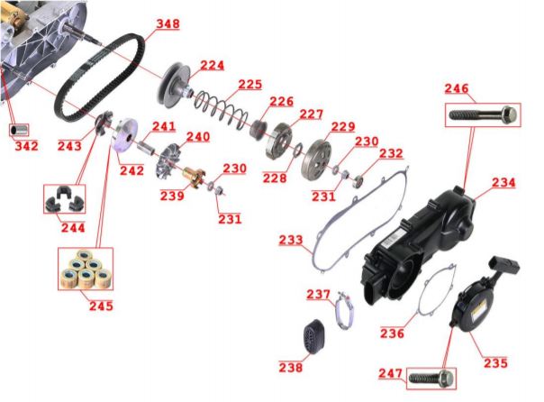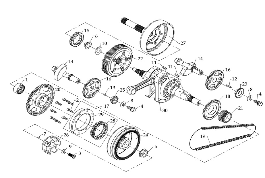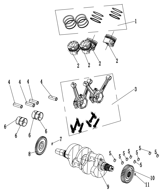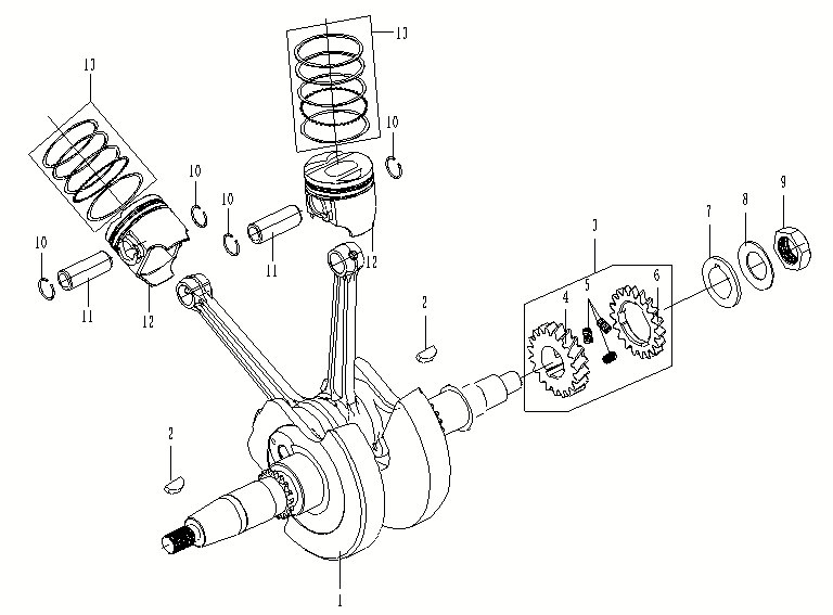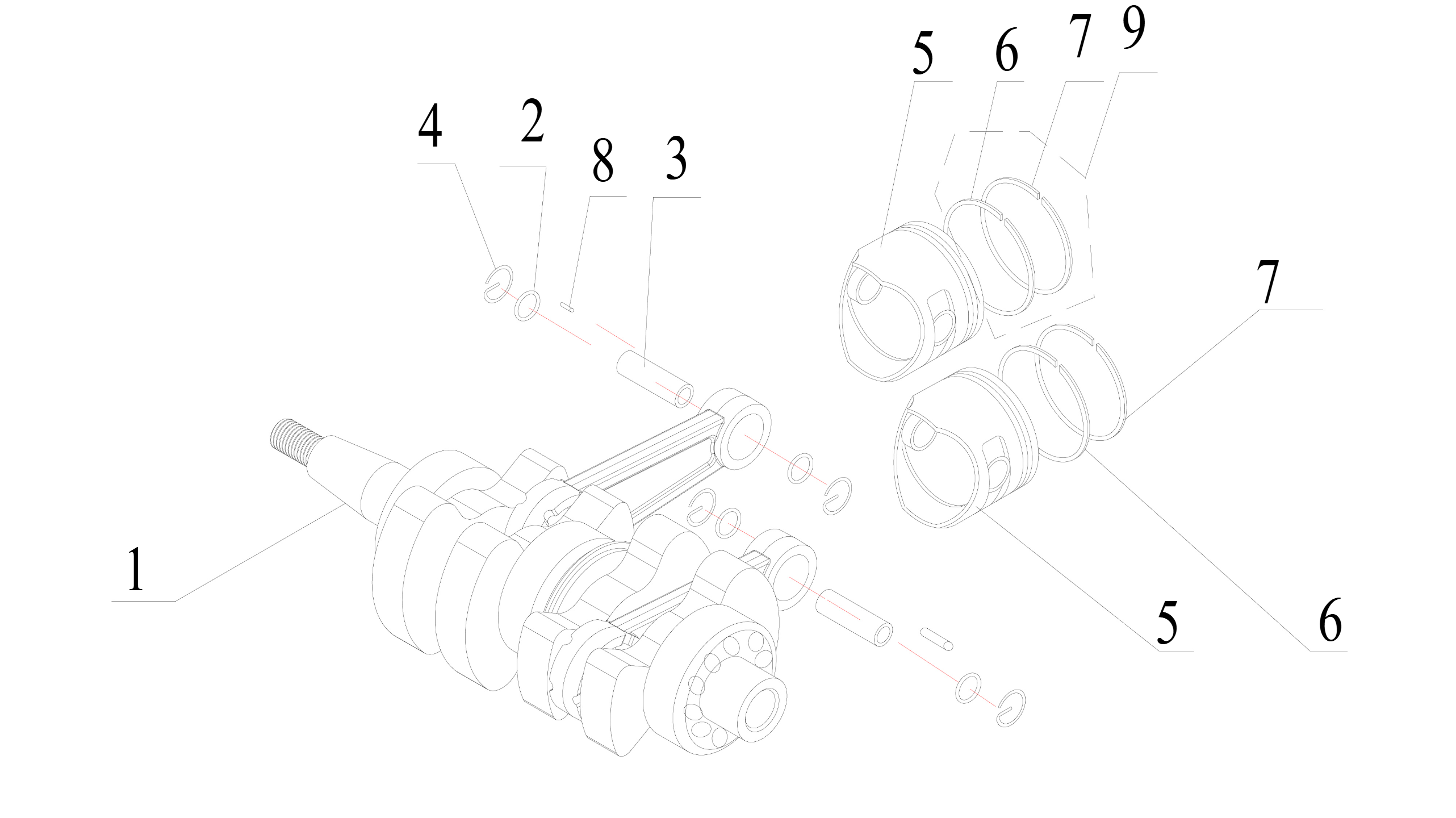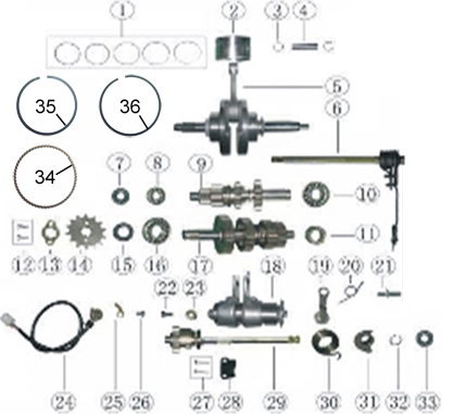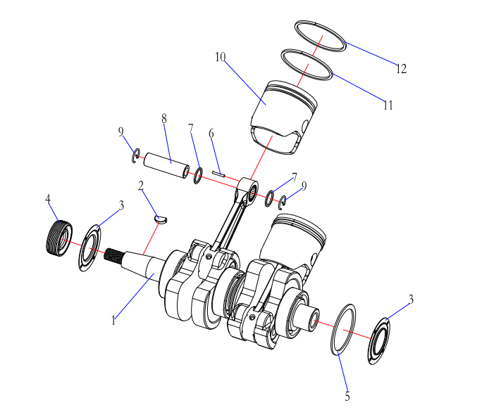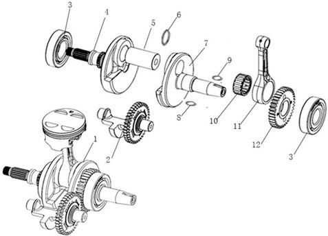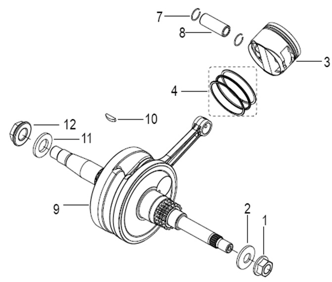 Коленчатый вал, поршни и шатуны 2-х тактного ПЛМ MERCURY 30 M Серийный номер от 0N001875 до 0N055504