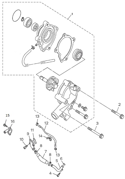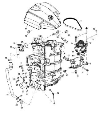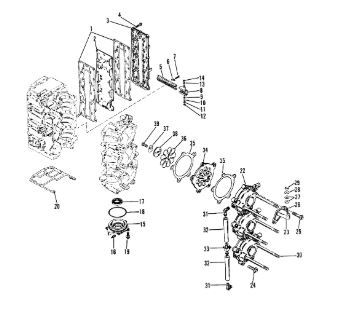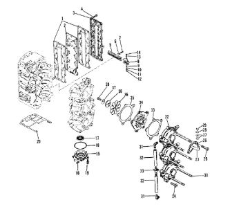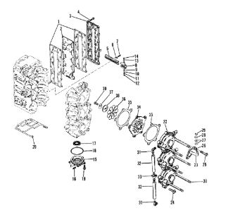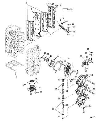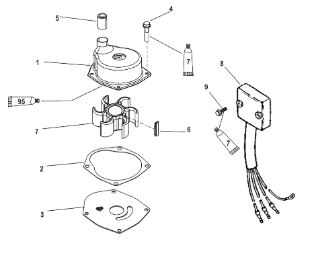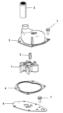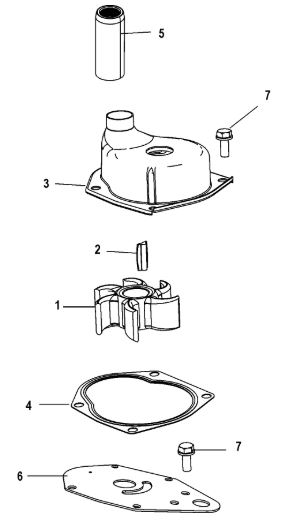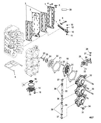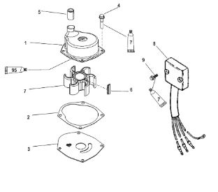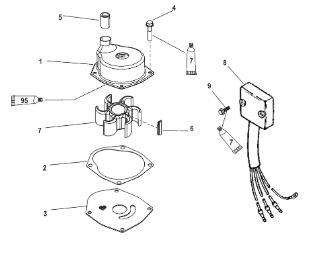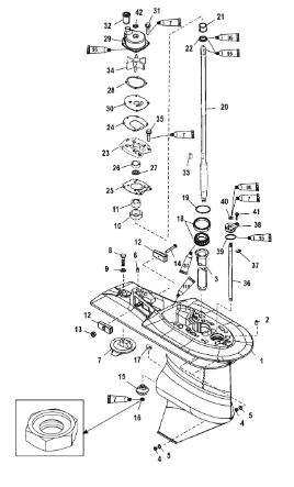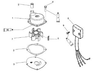 Компоненты водяного насоса двигателя 2-х тактного ПЛМ MERCURY 30 M Серийный номер от 0N055505 и выше