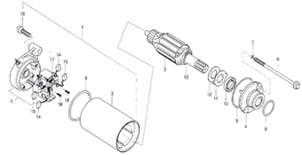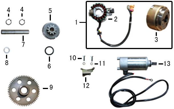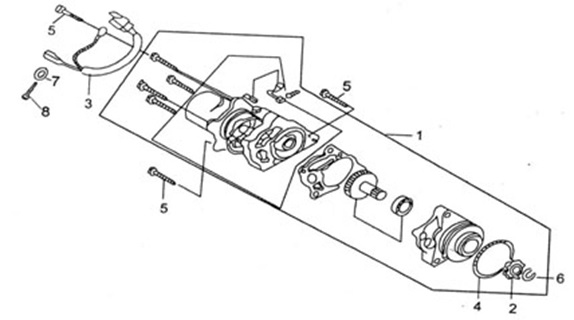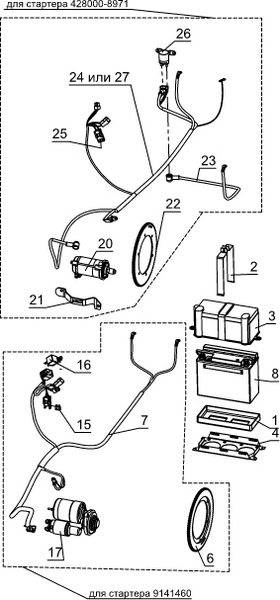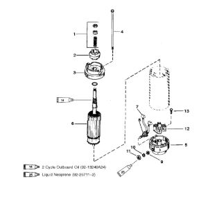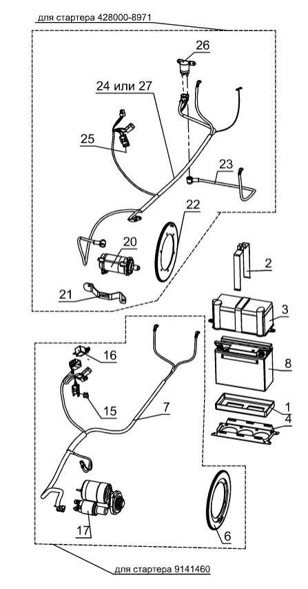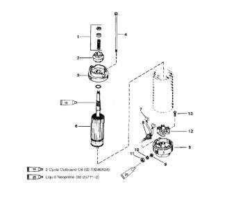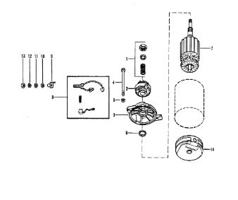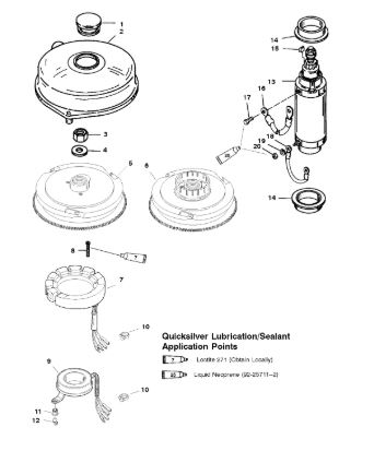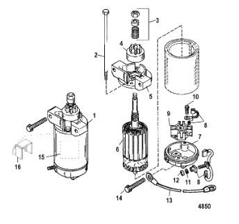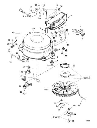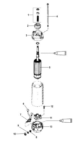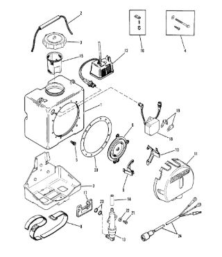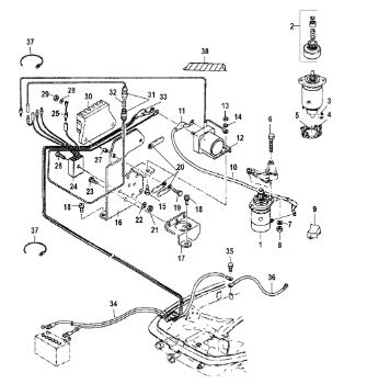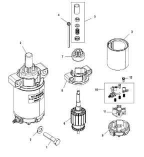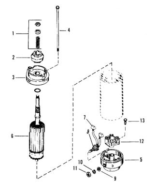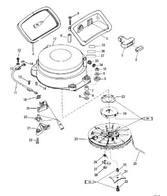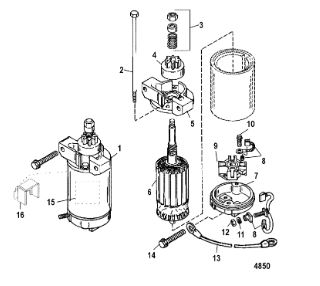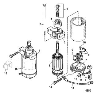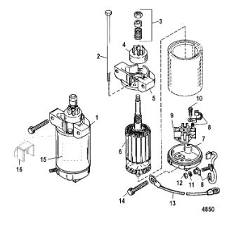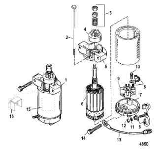 Компоненты электрического стартера 2-х тактного ПЛМ MERCURY Jet 25 Серийный номер от 0N088578 и выше