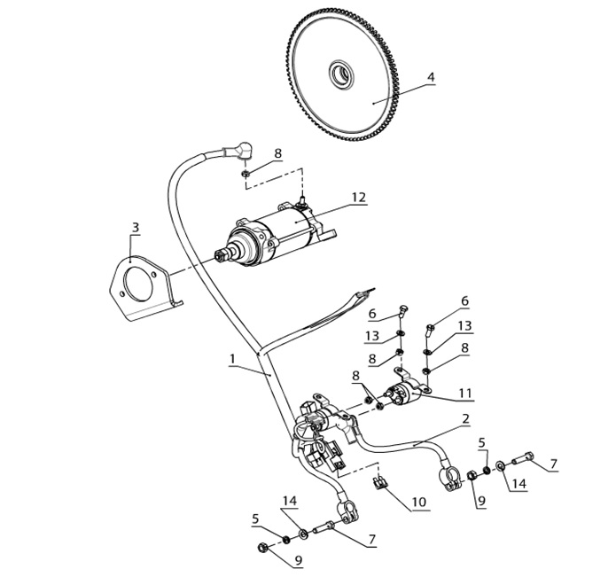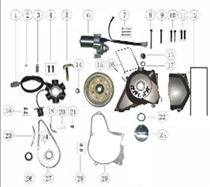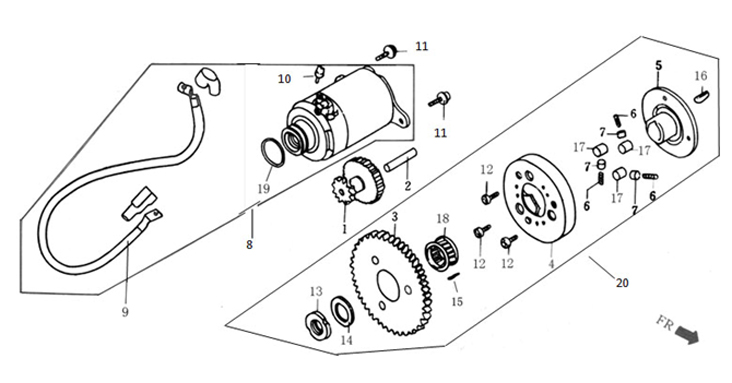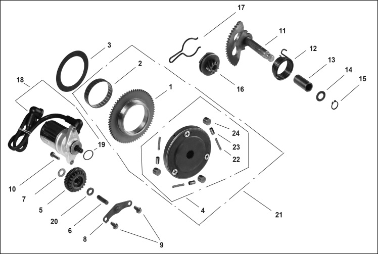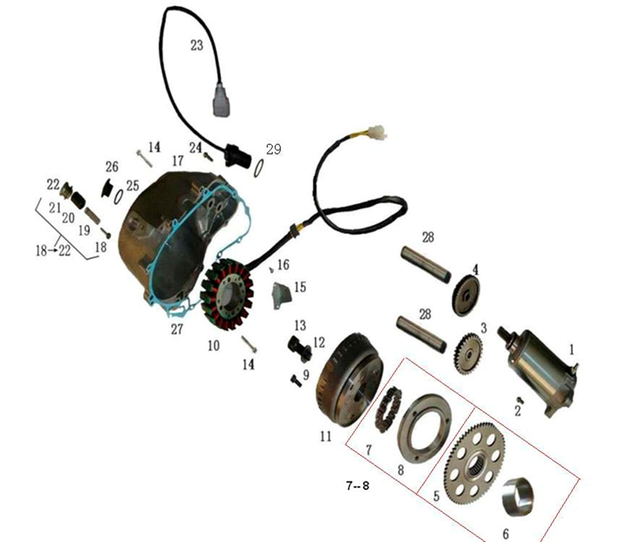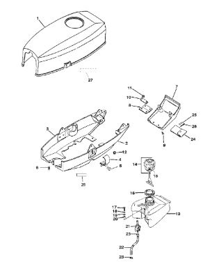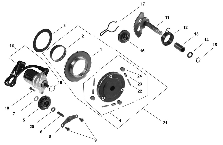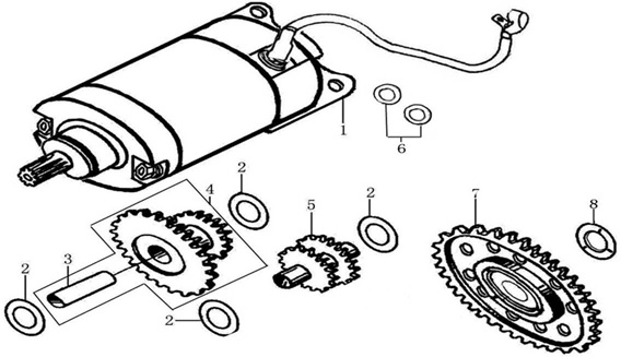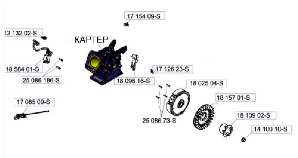 Компоненты электрического стартера 2-х тактного ПЛМ MERCURY Jet 25 Серийный номер от 0N088578 и выше