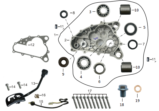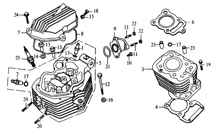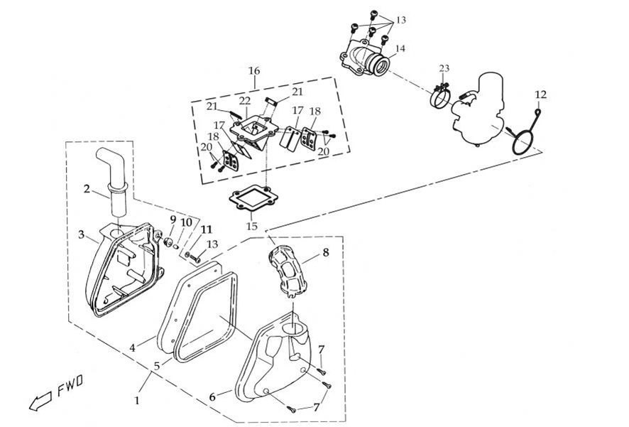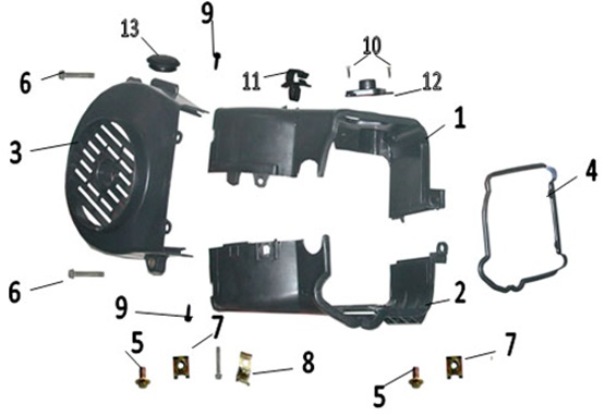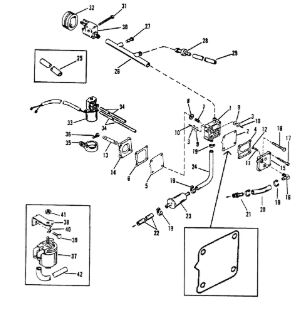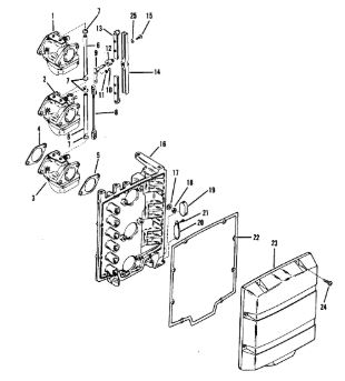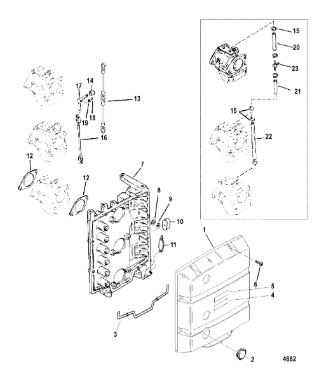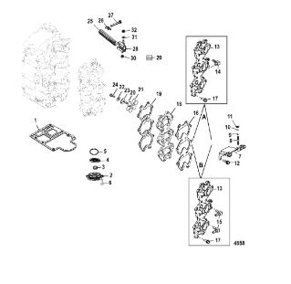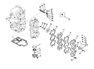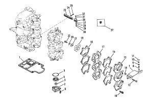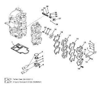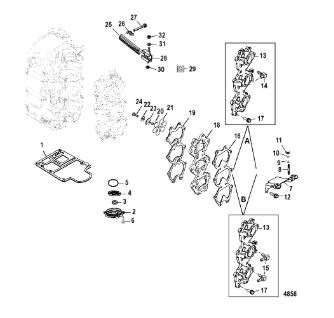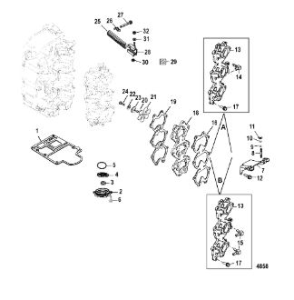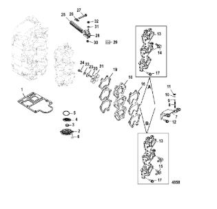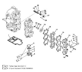 Комплектующие для прокладок двигателя 2-Х ТАКТНОГО ПЛМ MERCURY 4 M Серийный номер от 0P401000 и выше