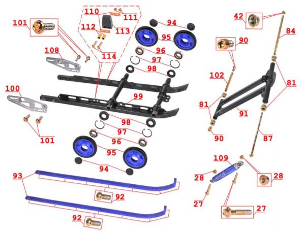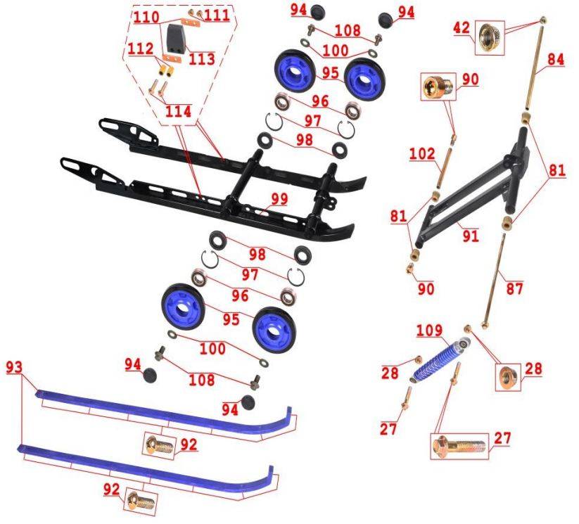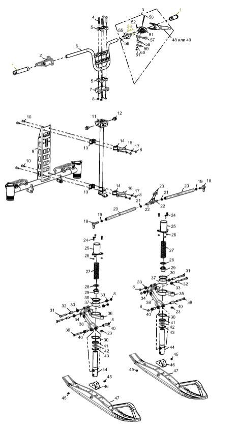 Подвеска передняя и лыжа для М10000010-01 для СММ РЫБИНКА M10000010-01 (ВЫПУСК С 09.2012 ПО 10.2013)
