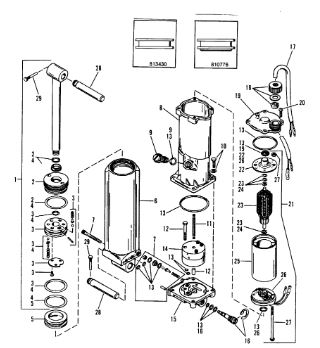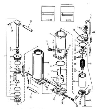 Компоненты гидроподъема (Часть 1) 4-Х ТАКТНОГО ПЛМ MERCURY 40 Серийный номер от 0P401000 до 0P515896