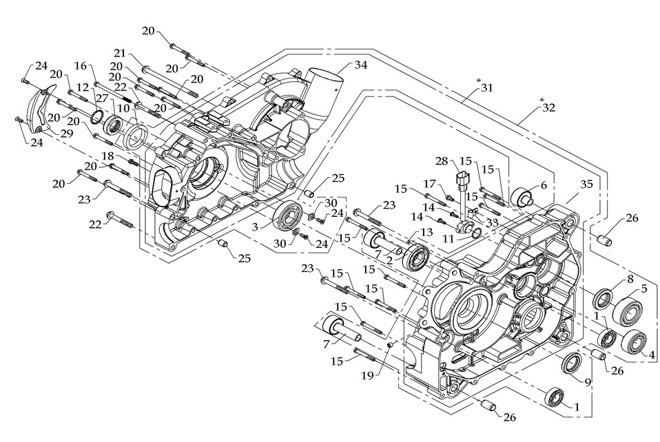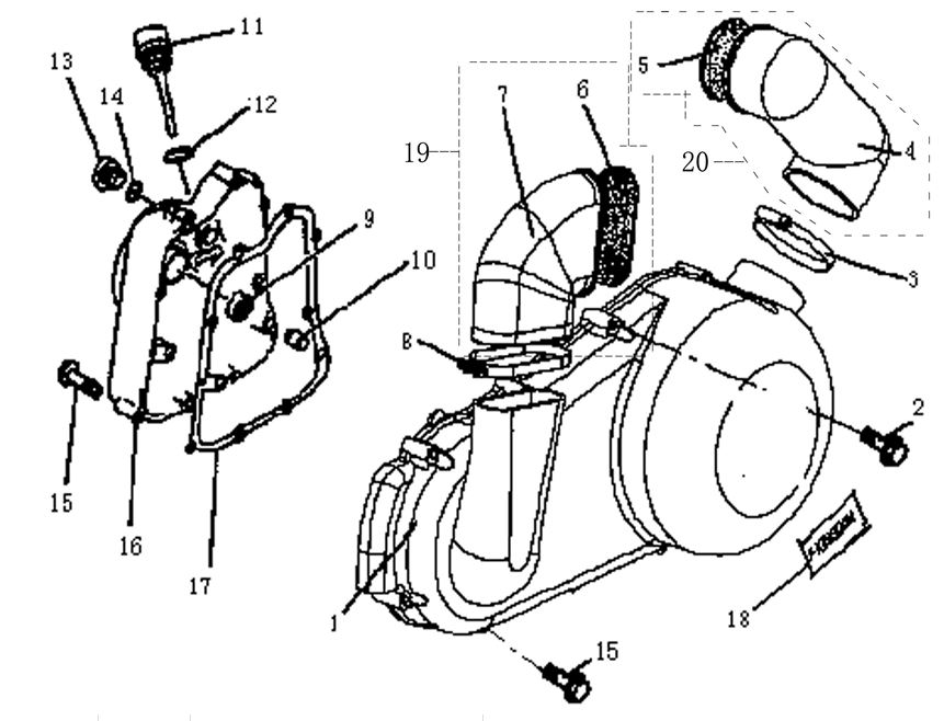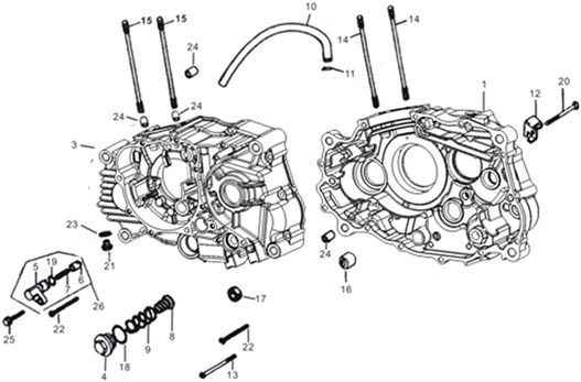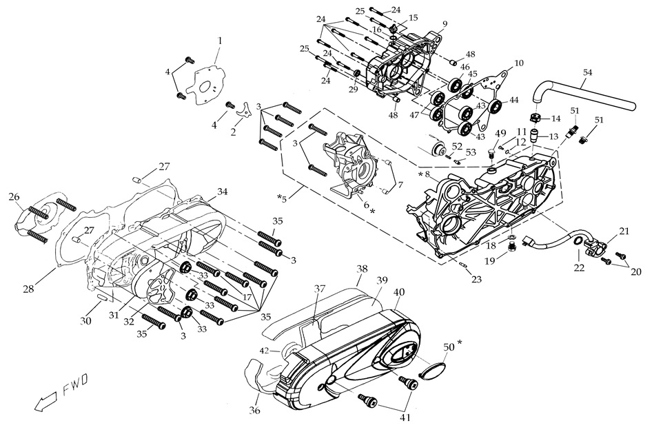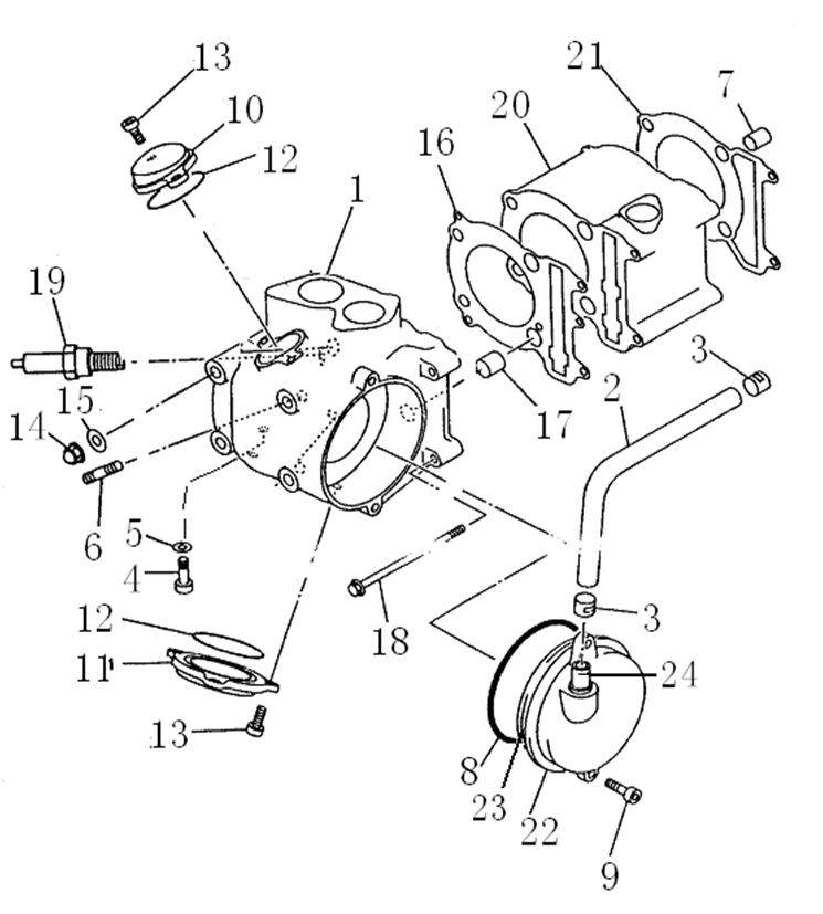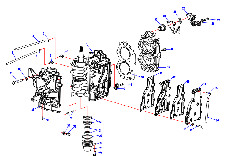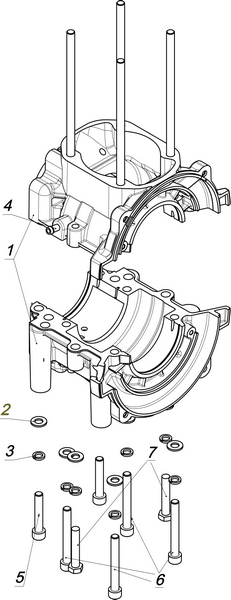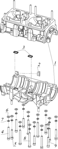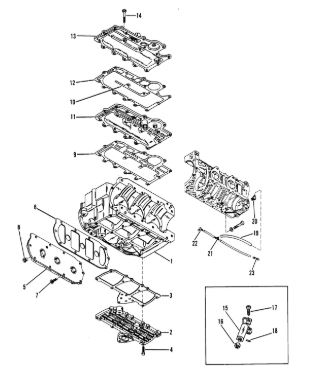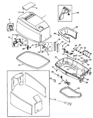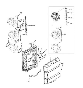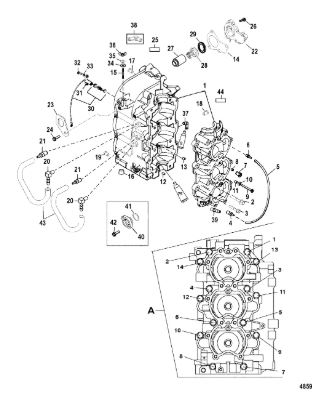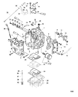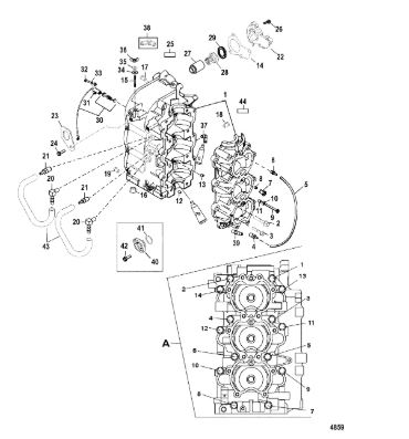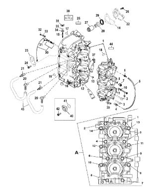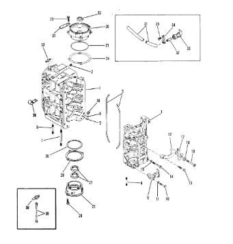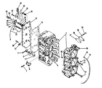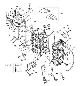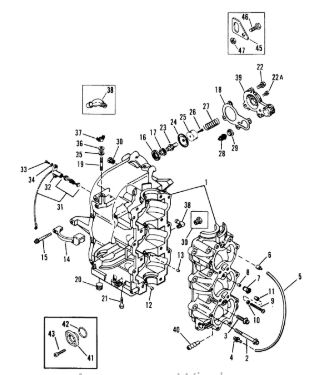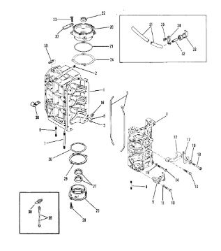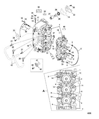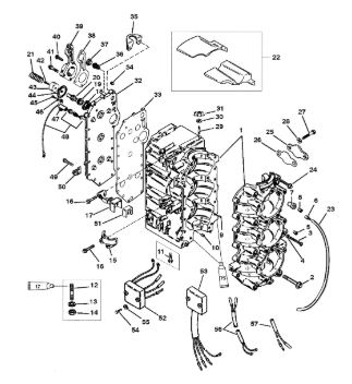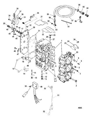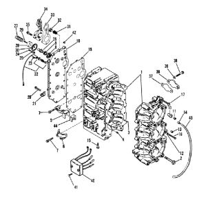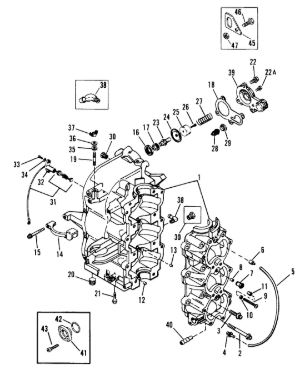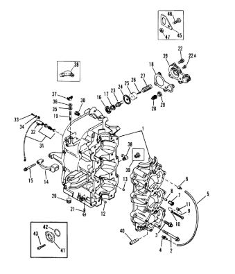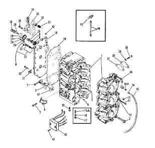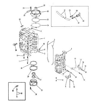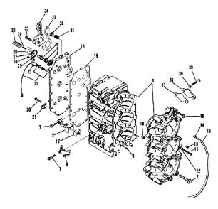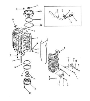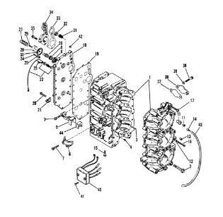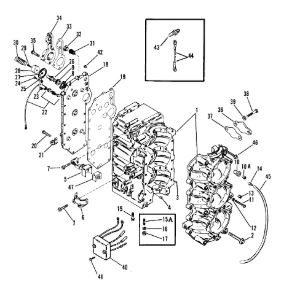 Блок цилиндров и картер (Часть 1) 2-Х ТАКТНОГО ПЛМ MERCURY 50EO Серийный номер от 9885345 до 9973099