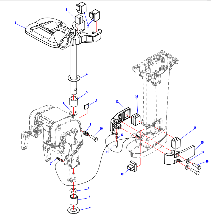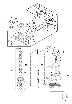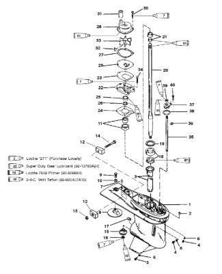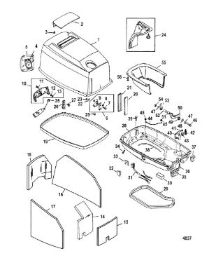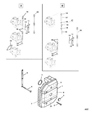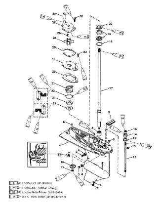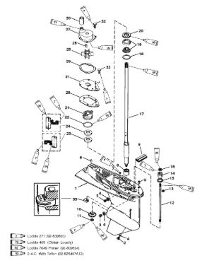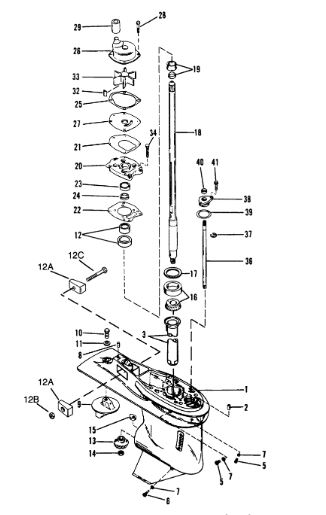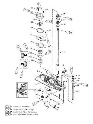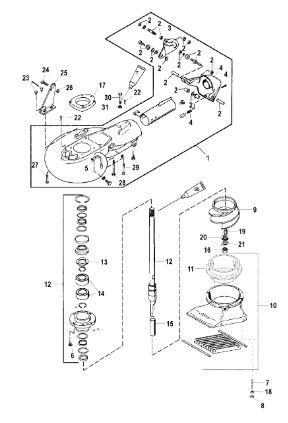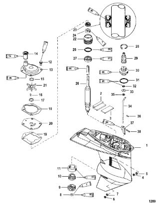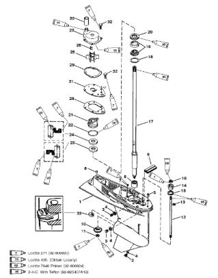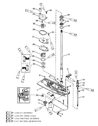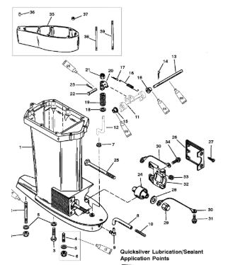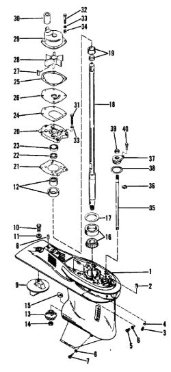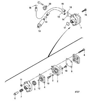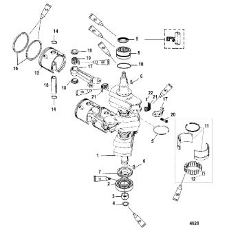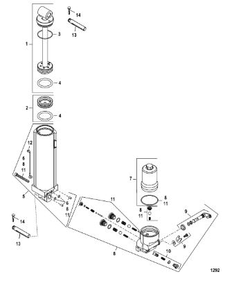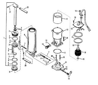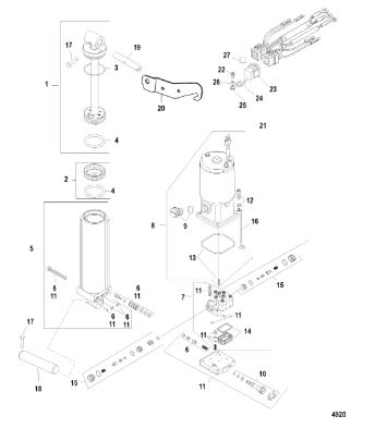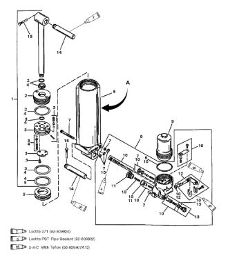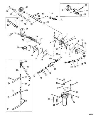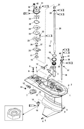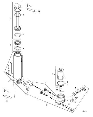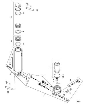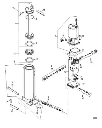 Компоненты гидроподъема (Часть 1) 4-Х ТАКТНОГО ПЛМ MERCURY 40 Серийный номер от 0P153500 до 0P400999