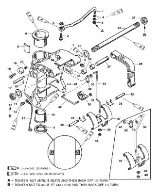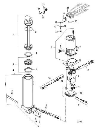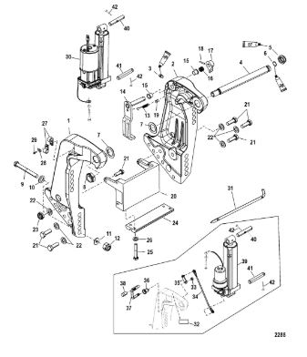 Компоненты гидроподъема (Часть 1) 4-Х ТАКТНОГО ПЛМ MERCURY 40 Серийный номер от 1B227000 до 1B344398