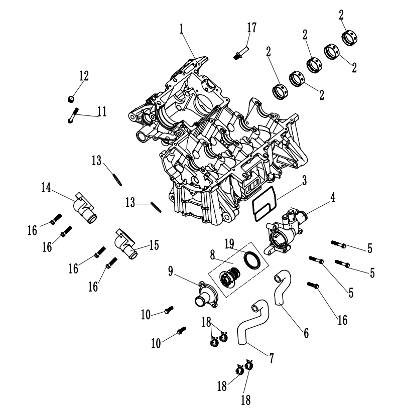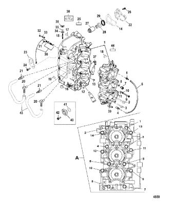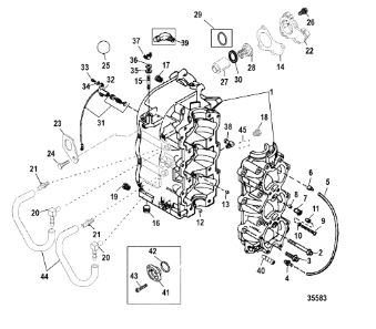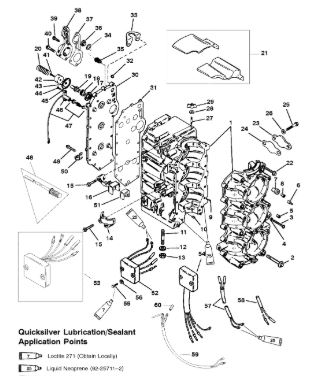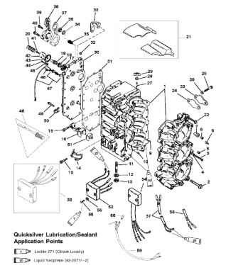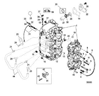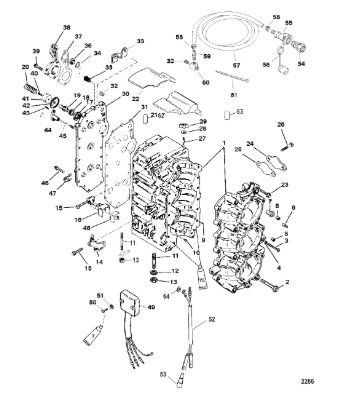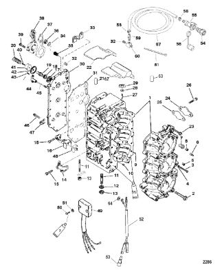 Блок цилиндров и картер (Часть 2) 2-Х ТАКТНОГО ПЛМ MERCURY 55 Серийный номер от 0G290585 до 0G589999