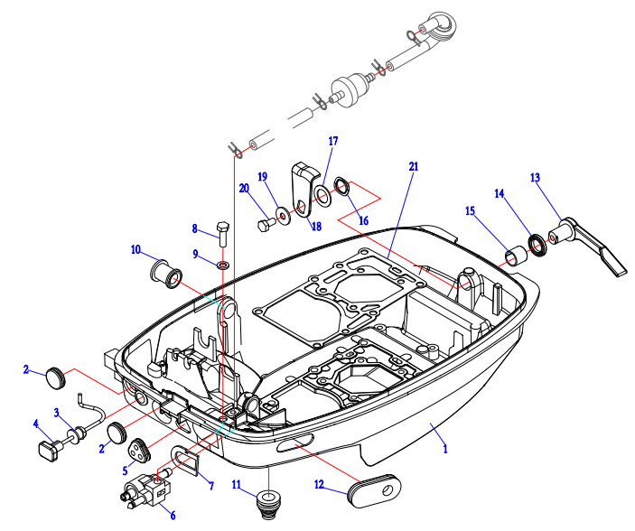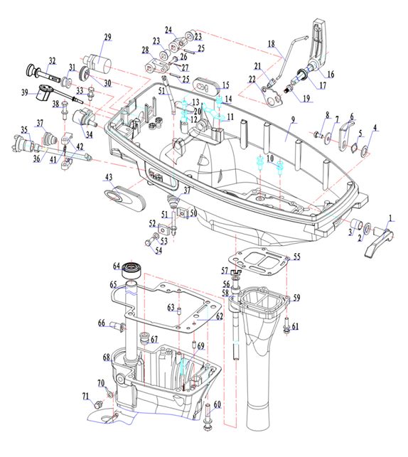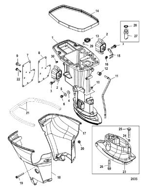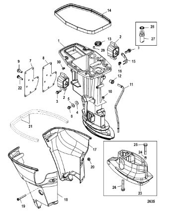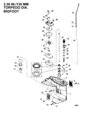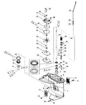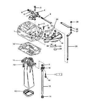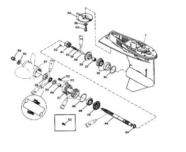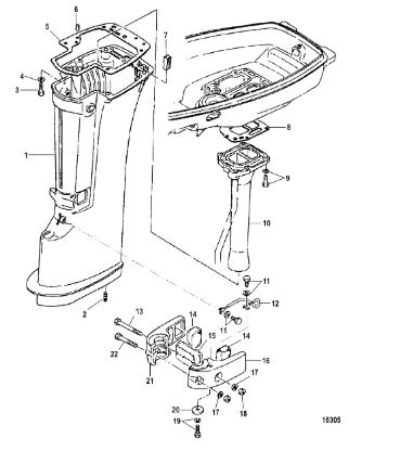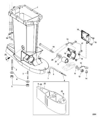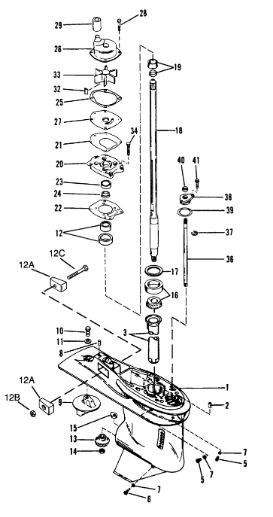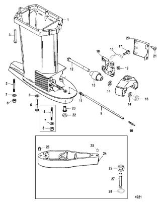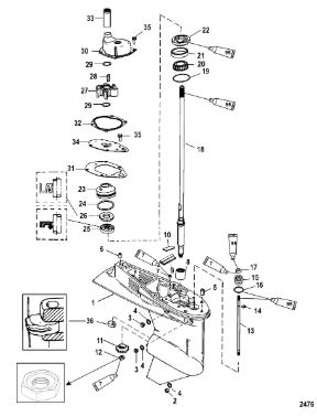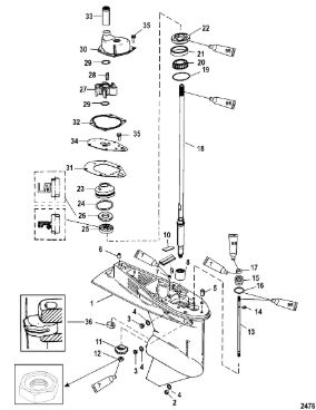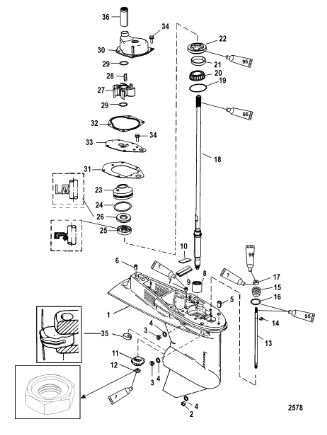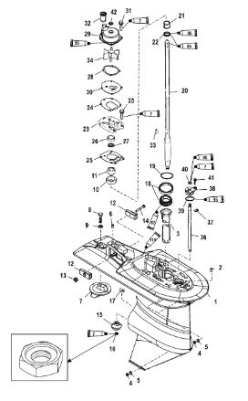 Корпус карданного вала, редуктор 2-х тактного ПЛМ MERCURY 5 M Серийный номер от 0P017000 до 0P400999