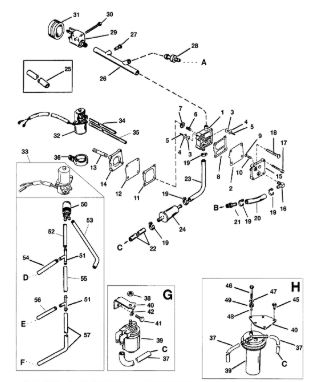 Топливный насос (белый или красный) 2-Х ТАКТНОГО ПЛМ MERCURY 60 Серийный номер от 9683055 до 9885344