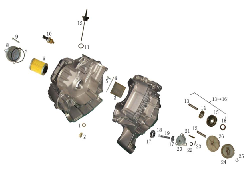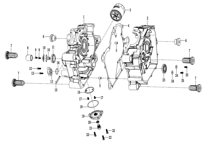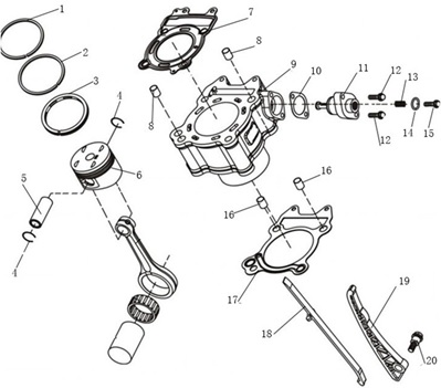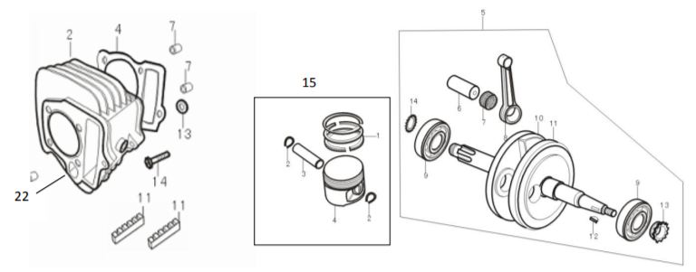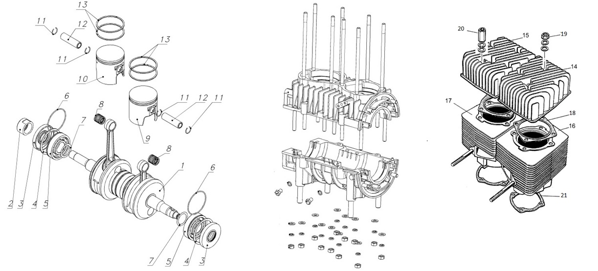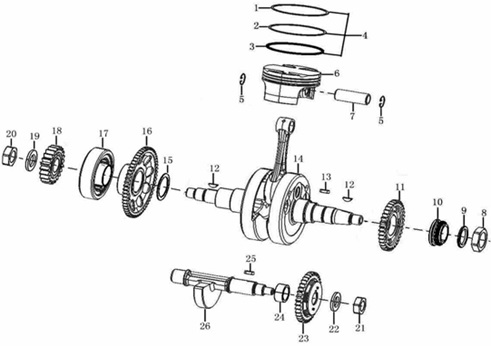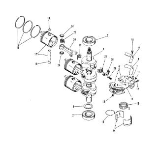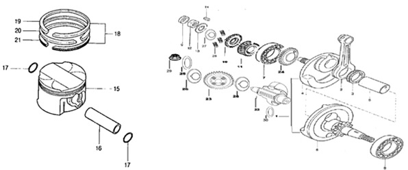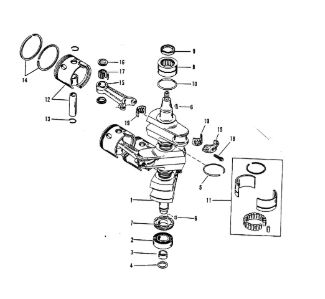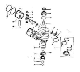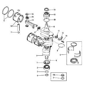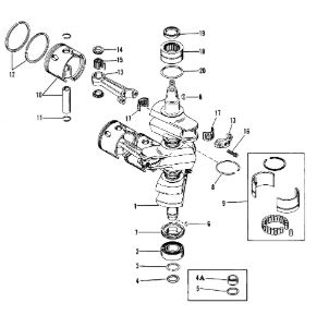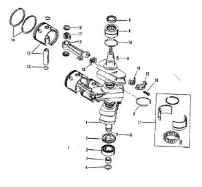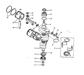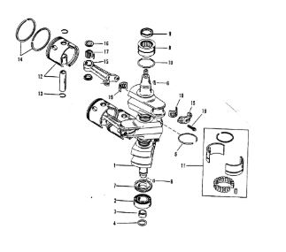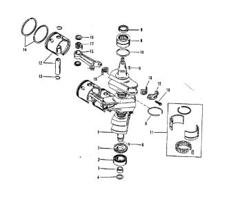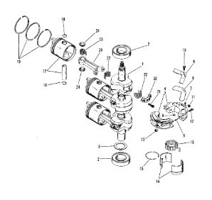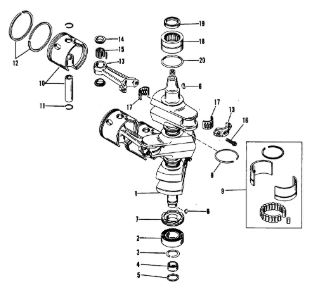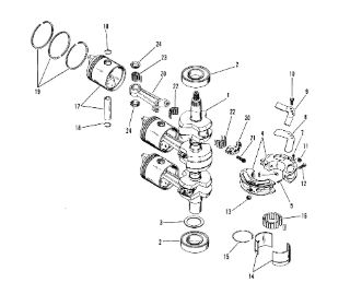 Коленчатый вал, поршни и шатуны 2-х тактного ПЛМ MERCURY 25 М Серийный номер от 0N018456 до 0N055504