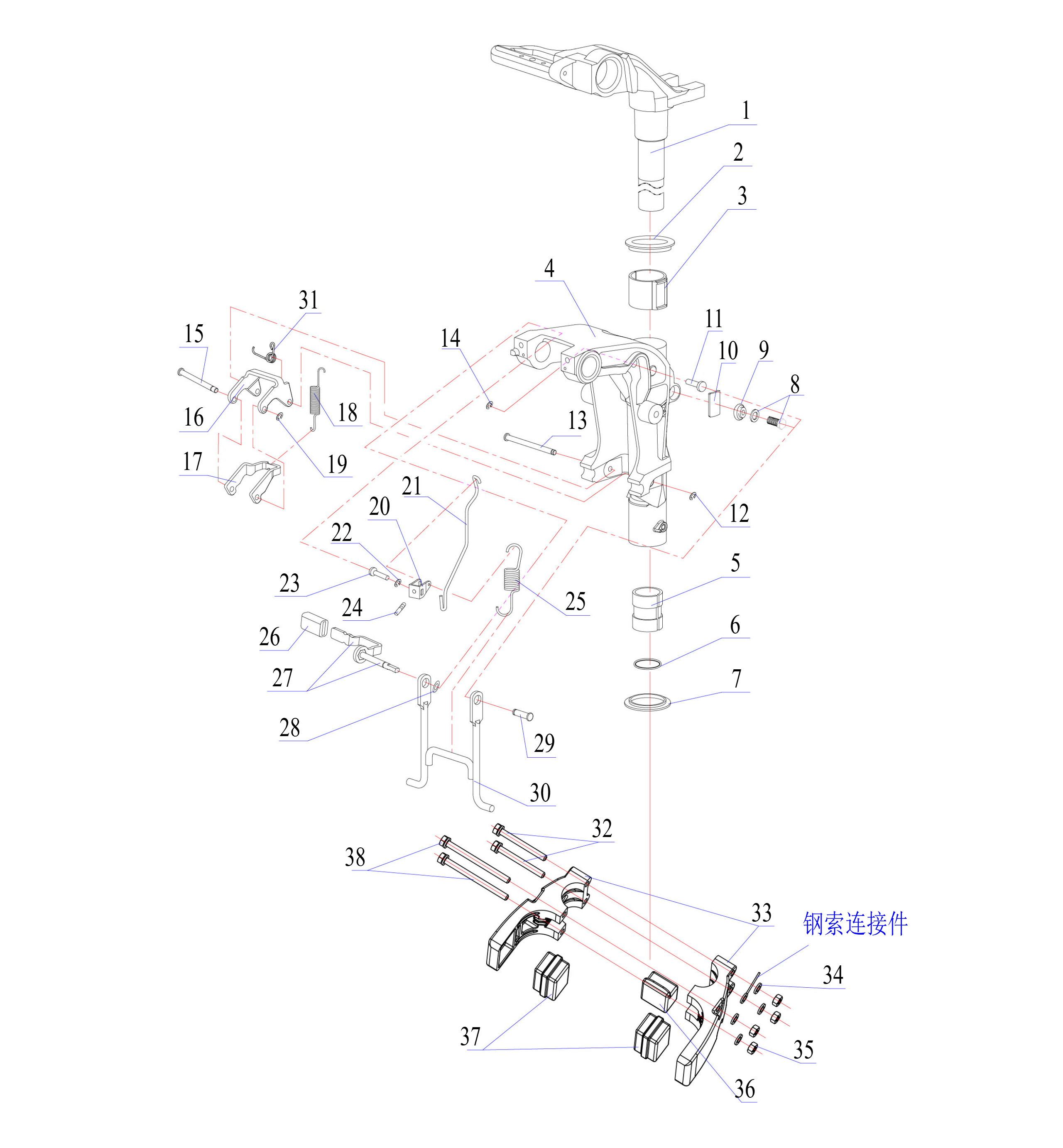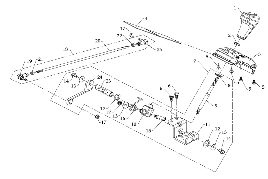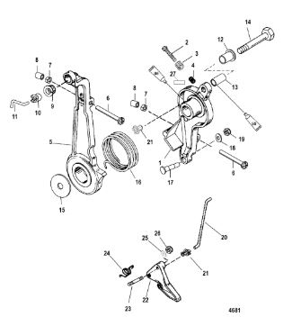 Компоненты ручки переключения передач 4-Х ТАКТНОГО ПЛМ MERCURY 135 Серийный номер от 0P514869 и выше