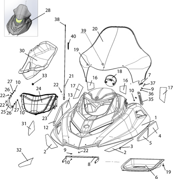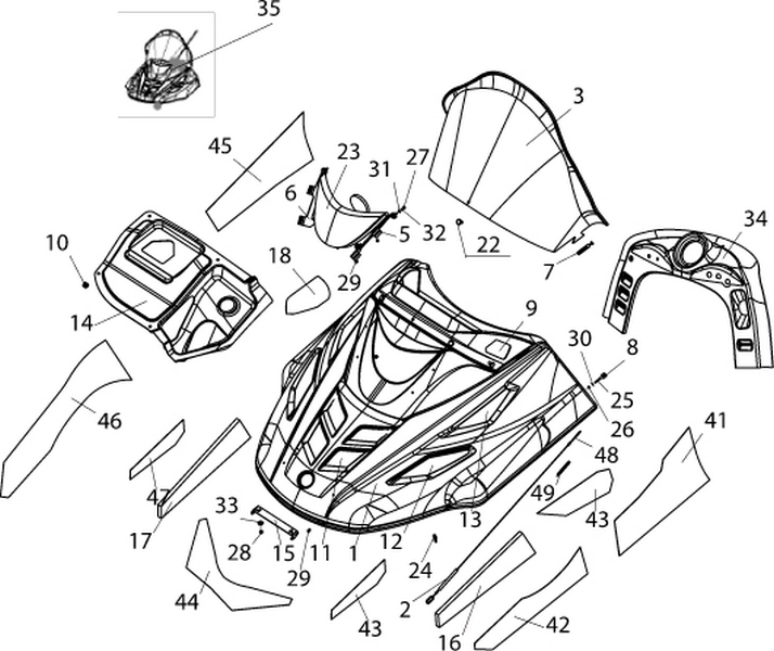 Задний обтекатель, замок в сборе 4-Х ТАКТНОГО ПЛМ MERCURY 135 Серийный номер от 1B381712 до 1B517158