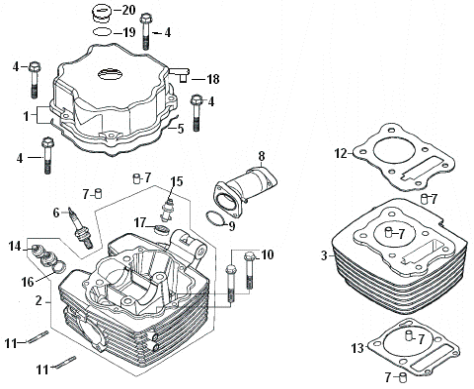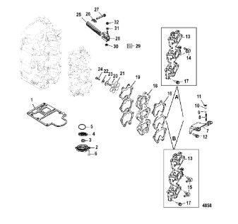 Комплектующие для прокладок двигателя 2-Х ТАКТНОГО ПЛМ MERCURY 4 M Серийный номер от 0T894439 и выше