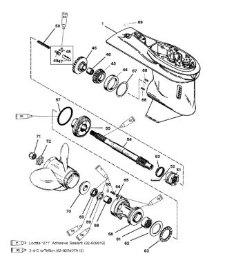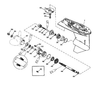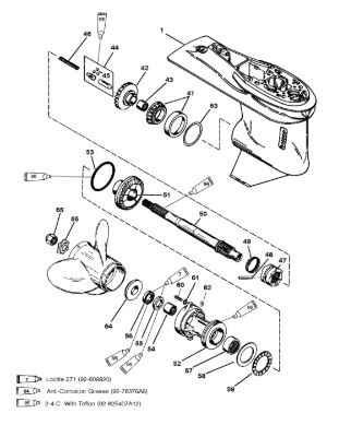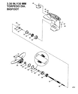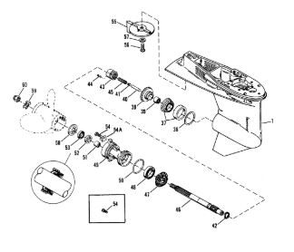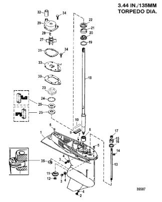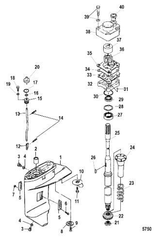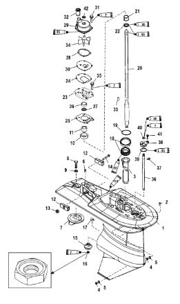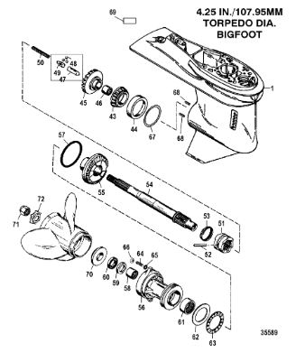 Корпус шестерни (карданный вал) 2-Х ТАКТНОГО ПЛМ MERCURY 50EO Серийный номер от 0D000750 до 0G290584