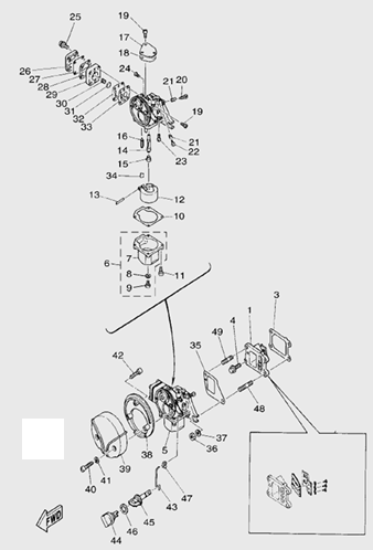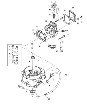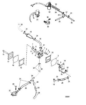 Карбюратор и пластина аттенюатора 2-Х ТАКТНОГО ПЛМ MERCURY 90 Серийный номер от 0A996142 до 0B240450