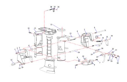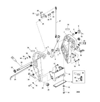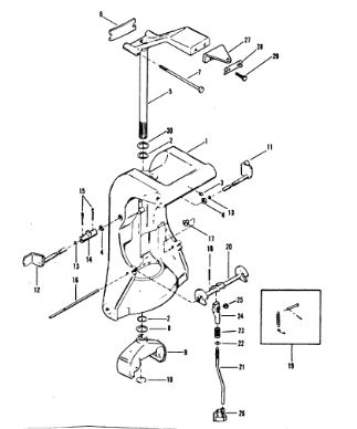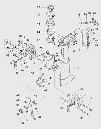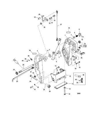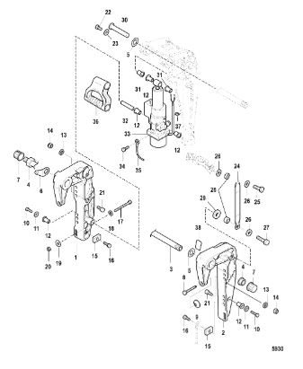 Поворотный кронштейн (Часть 1) 2-х тактного ПЛМ MERCURY 40 M Серийный номер от 00P017000 до 0P325499