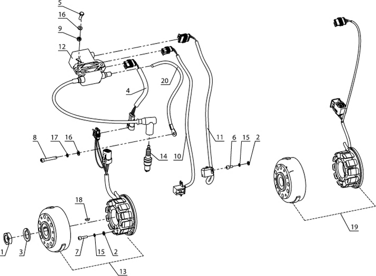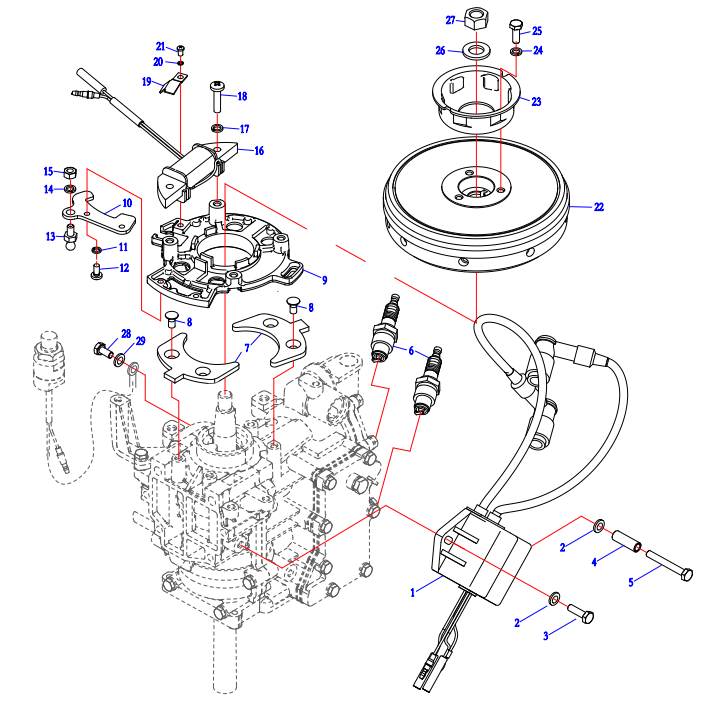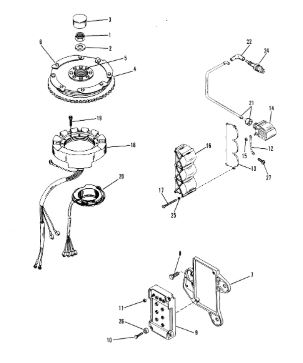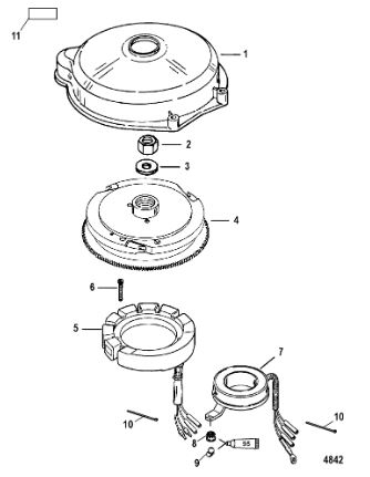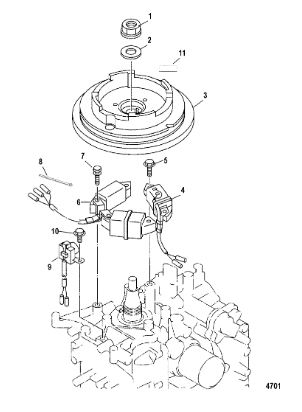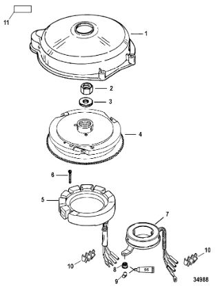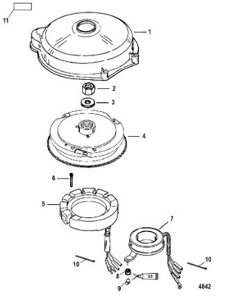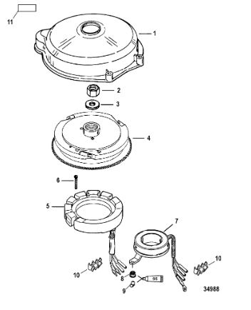 Маховик и статор (электрический) 2-Х ТАКТНОГО ПЛМ MERCURY 60 Серийный номер от 00G760300 до 0T979999