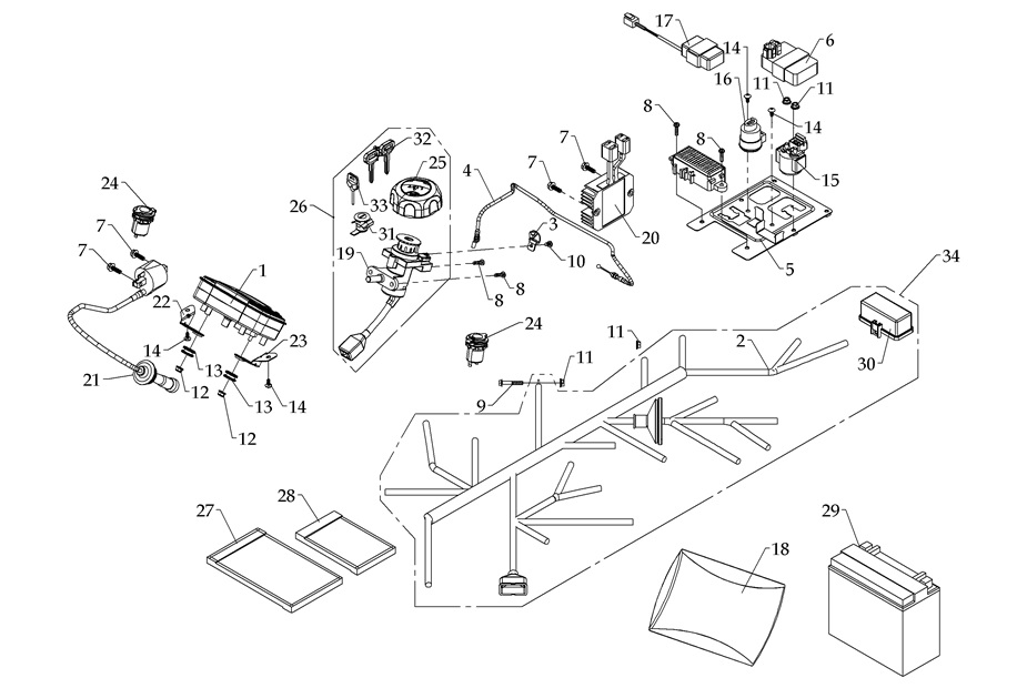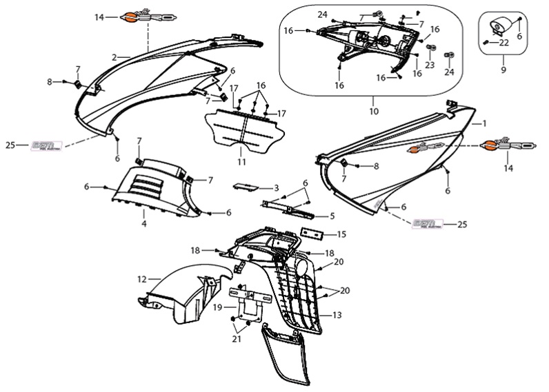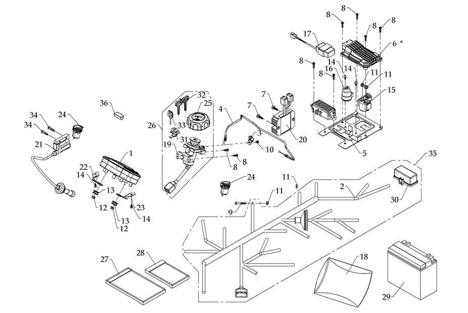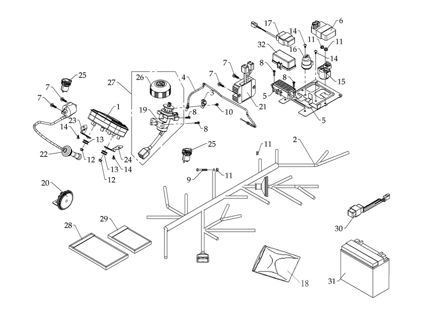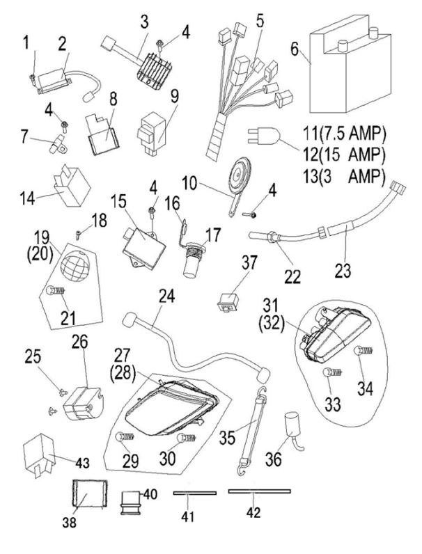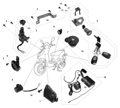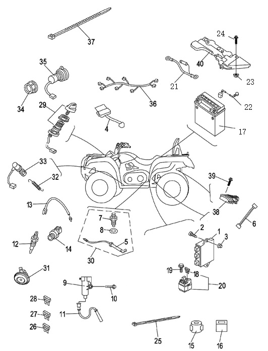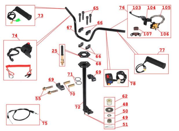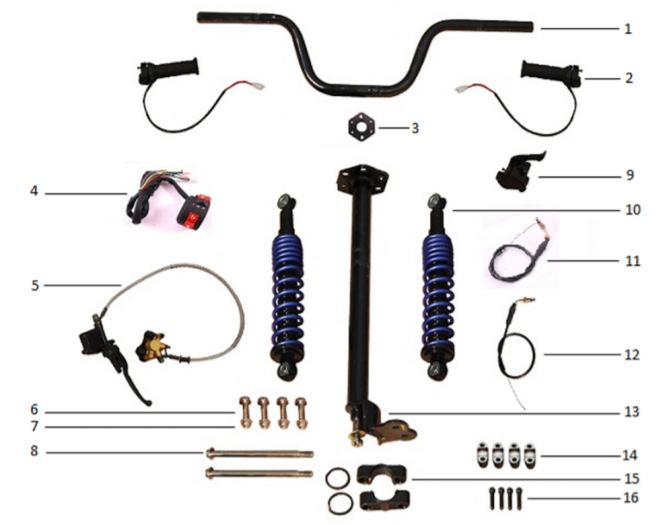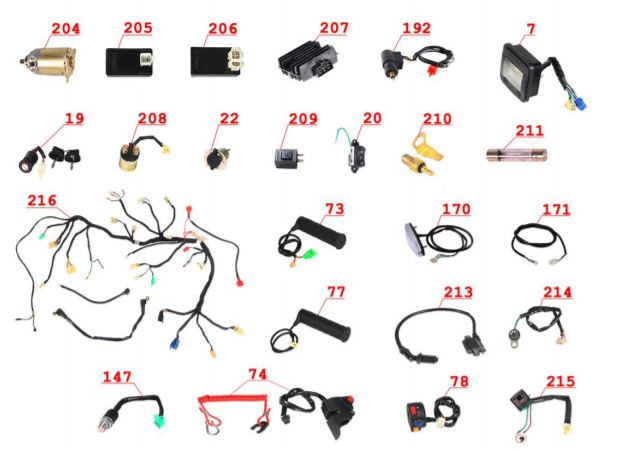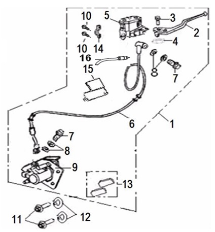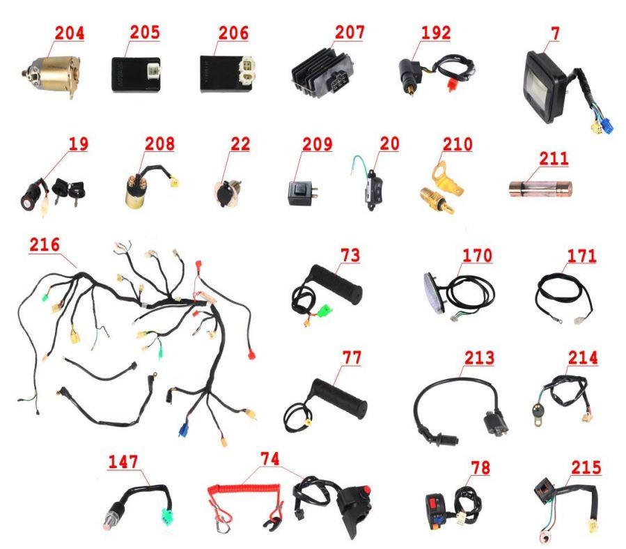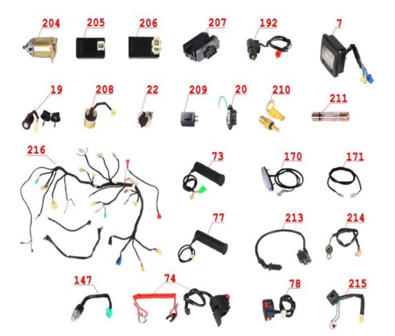 Электронная система + тормозная система + мелкие детали КВАДРОЦИКЛА GBM MAVERICK 222 (GERMAN SERIES)