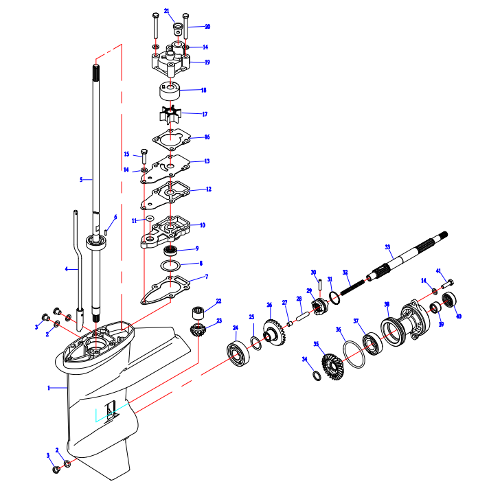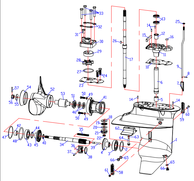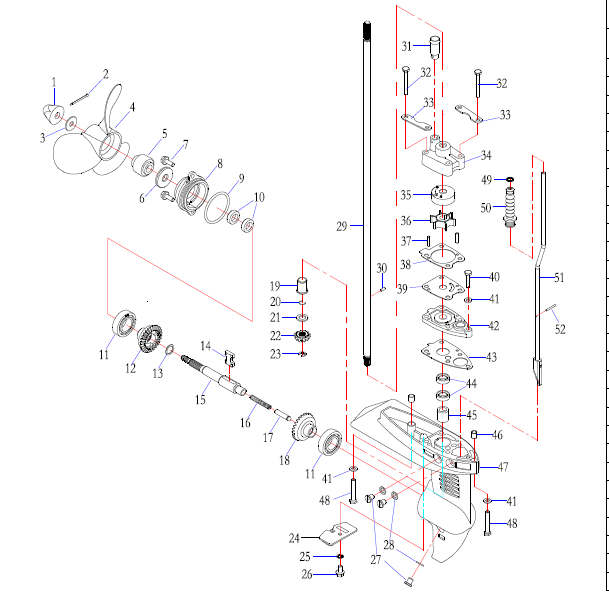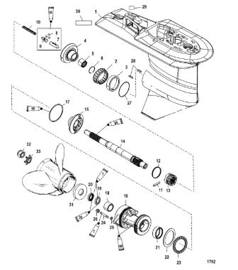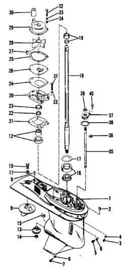 Корпус шестерни (карданный вал) 2-Х ТАКТНОГО ПЛМ MERCURY 50EO Серийный номер от 0B122930 до 0D000749