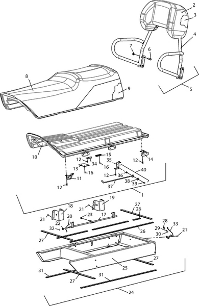 Компоненты гидроподъема (Часть 1) 4-Х ТАКТНОГО ПЛМ MERCURY 40 Серийный номер от 1C000001 до 1C049738