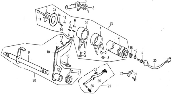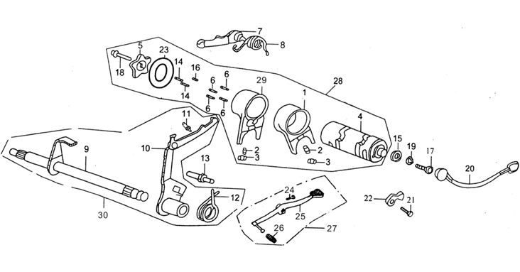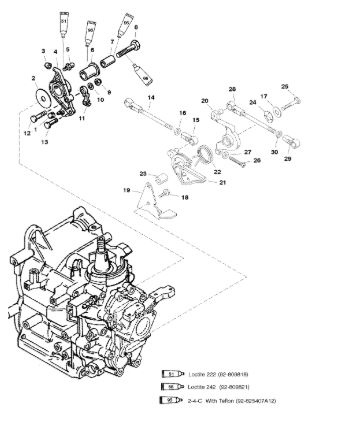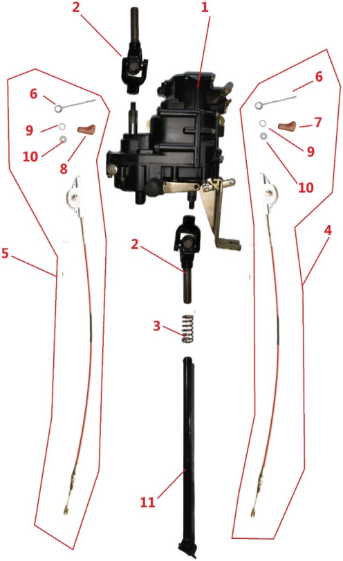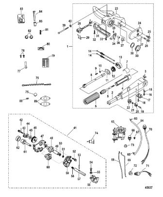 Компоненты ручки переключения передач 4-Х ТАКТНОГО ПЛМ MERCURY 135 Серийный номер от 1B517159 и выше