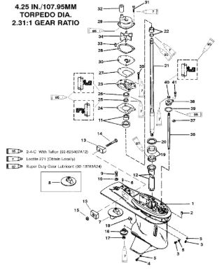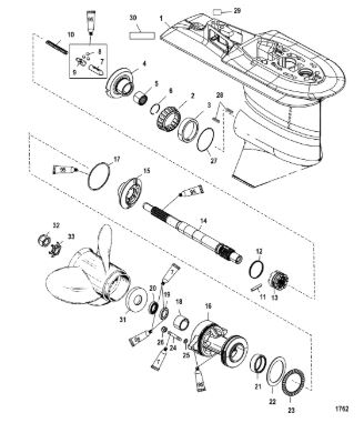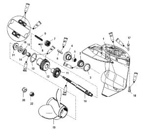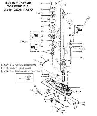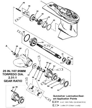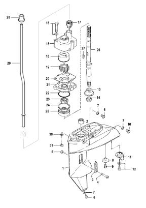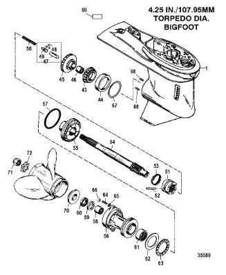 Корпус шестерни (приводной вал 2.31:1) 2-Х ТАКТНОГО ПЛМ MERCURY 75 Серийный номер от 1B000000 и выше