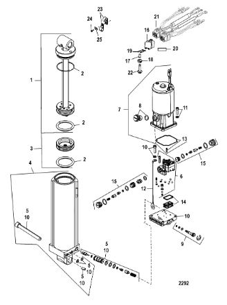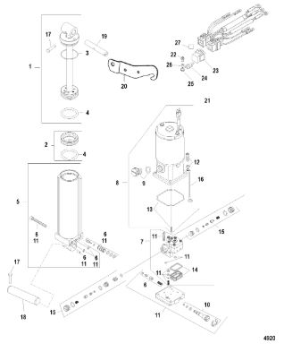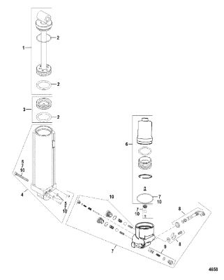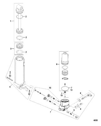 Компоненты гидроподъема (Часть 1) 4-Х ТАКТНОГО ПЛМ MERCURY 30 Серийный номер от 0P153500 до 0P400999