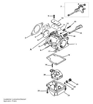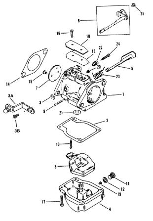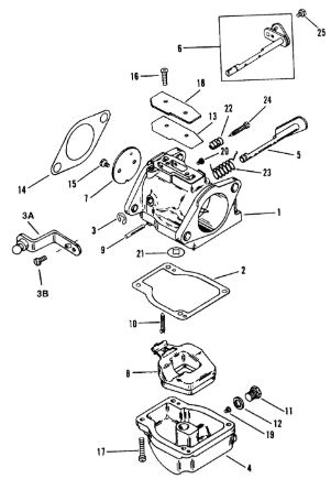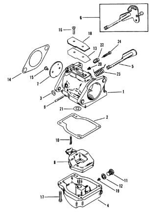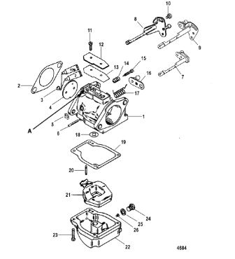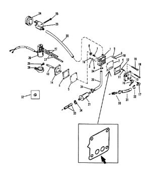 Карбюратор и пластина аттенюатора 2-Х ТАКТНОГО ПЛМ MERCURY 75 Серийный номер от 0A996142 до 0B240450