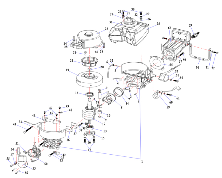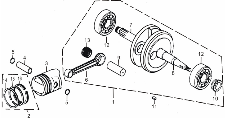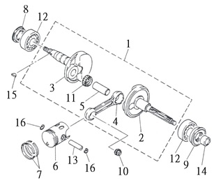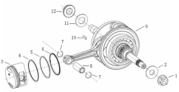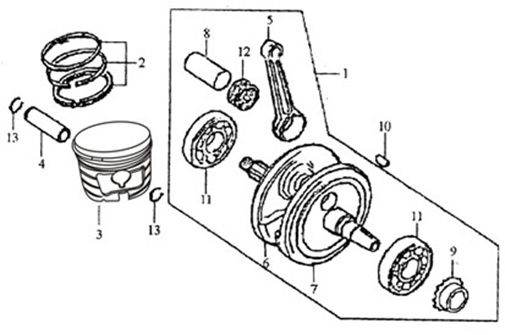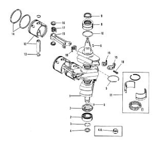 Коленчатый вал, поршень, маховик 2-х тактного ПЛМ MERCURY 40 M Серийный номер от 9854537 до 0P016999