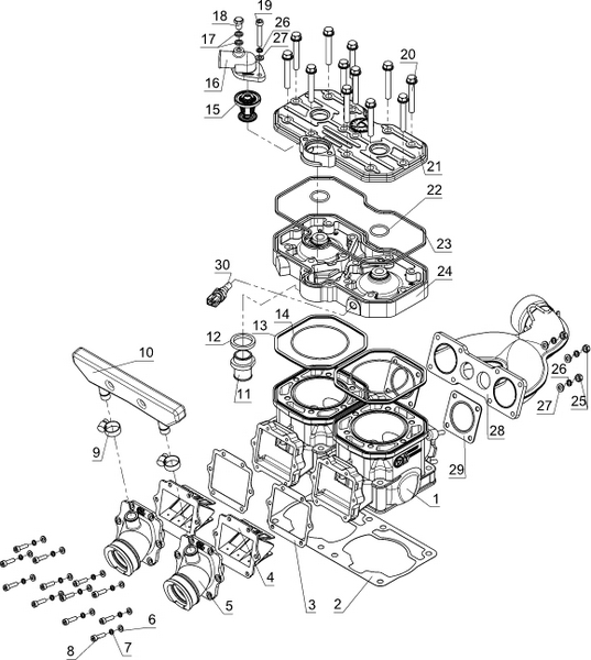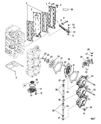 Комплектующие для прокладок двигателя 2-х тактного ПЛМ MERCURY 5 M Серийный номер от 0T894439 и выше