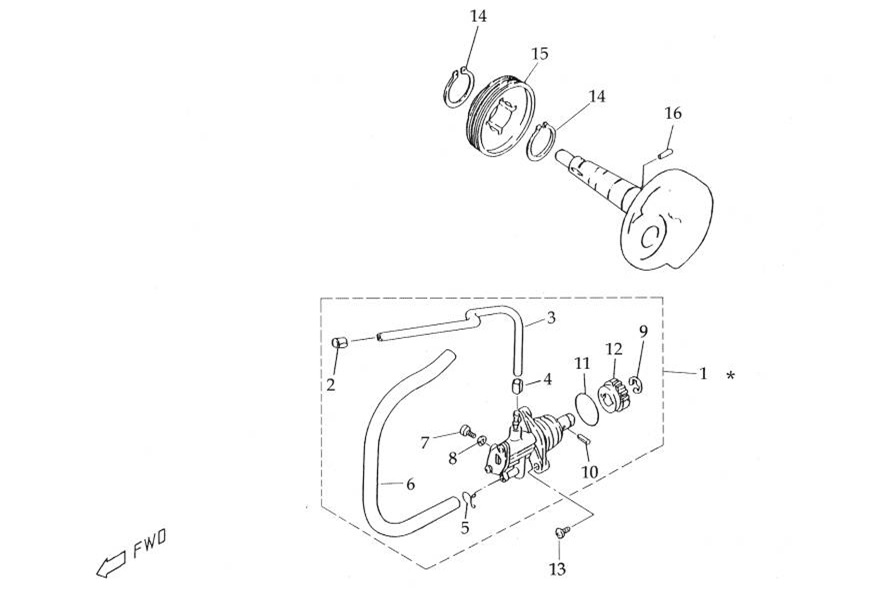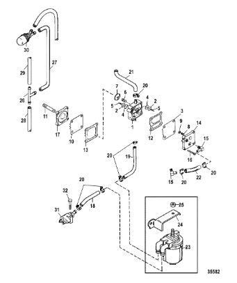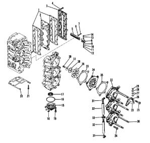 Компоненты водяного насоса двигателя 2-х тактного ПЛМ MERCURY 25 М Серийный номер от 0N055505 и выше