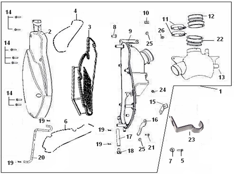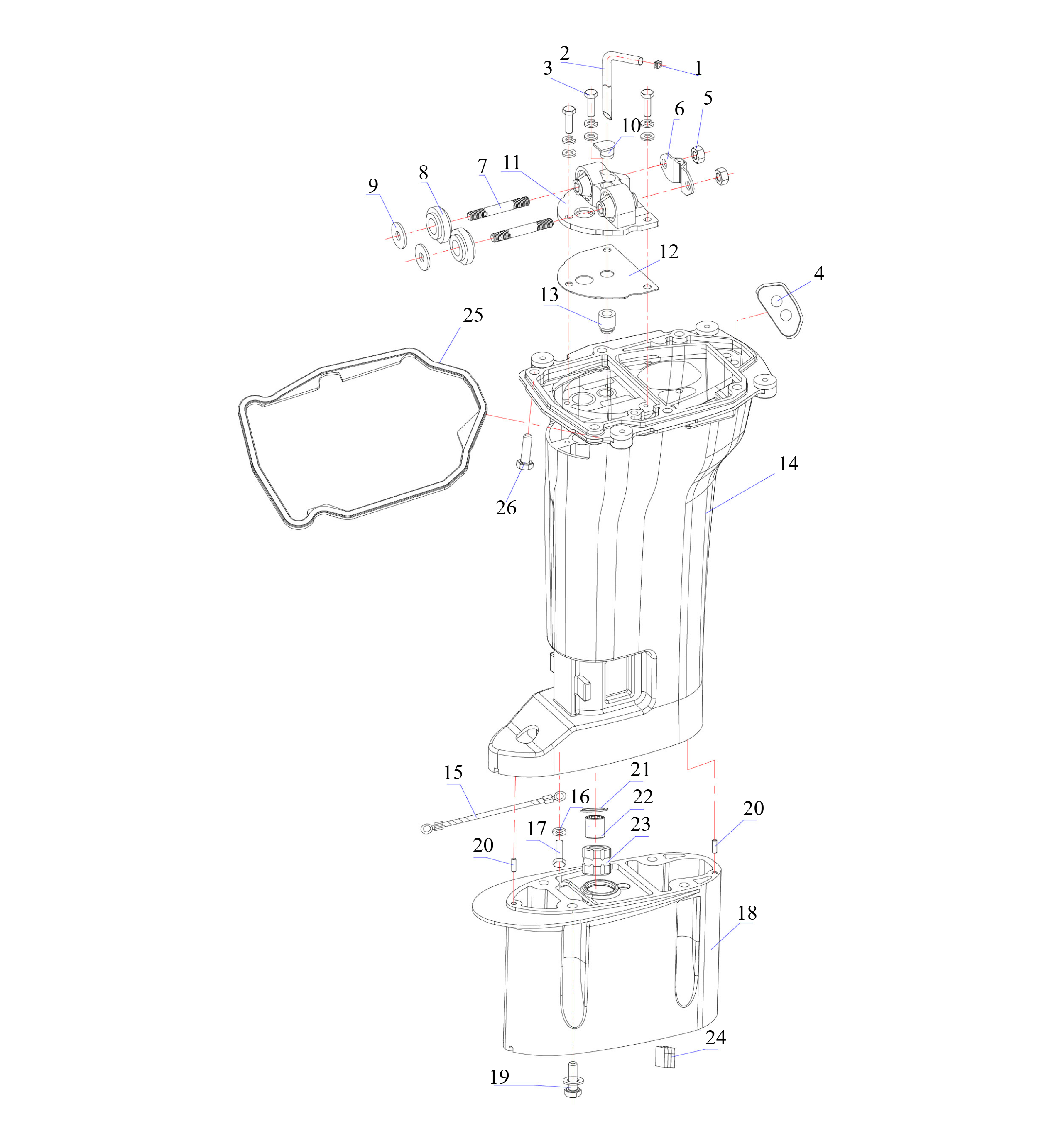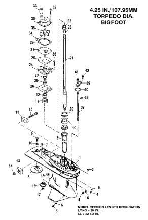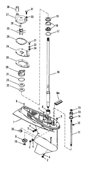 Удлинитель корпуса приводного вала 2-х тактного ПЛМ MERCURY Jet 25 Серийный номер от 0N088578 и выше