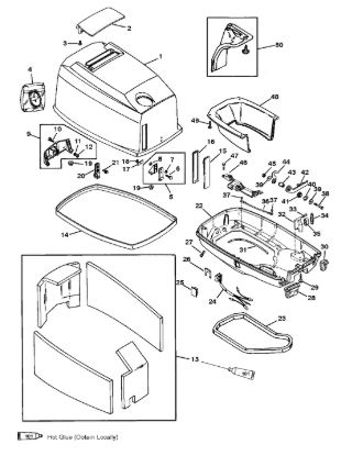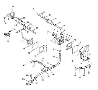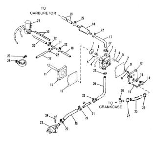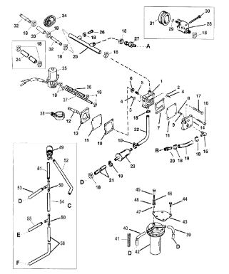 Цилиндры и гидравлические шланги 2-Х ТАКТНОГО ПЛМ MERCURY 50EO Серийный номер от 6428681 до 0B122929