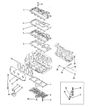 Комплектующие для прокладок двигателя 2-х тактного ПЛМ MERCURY 5 M Серийный номер от 0P401000 и выше