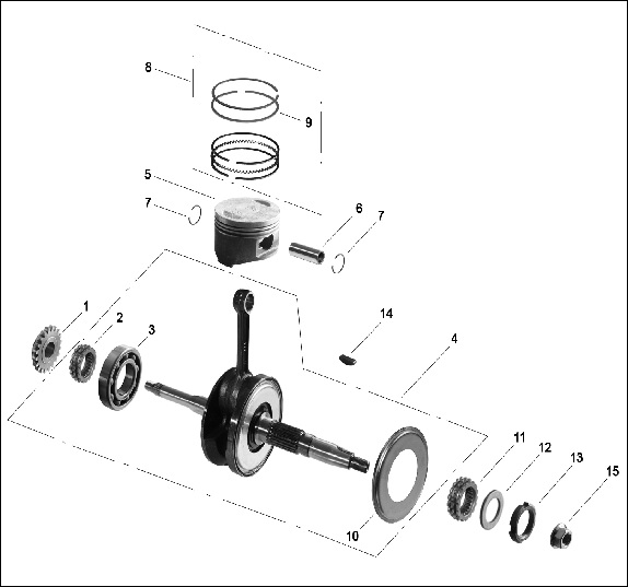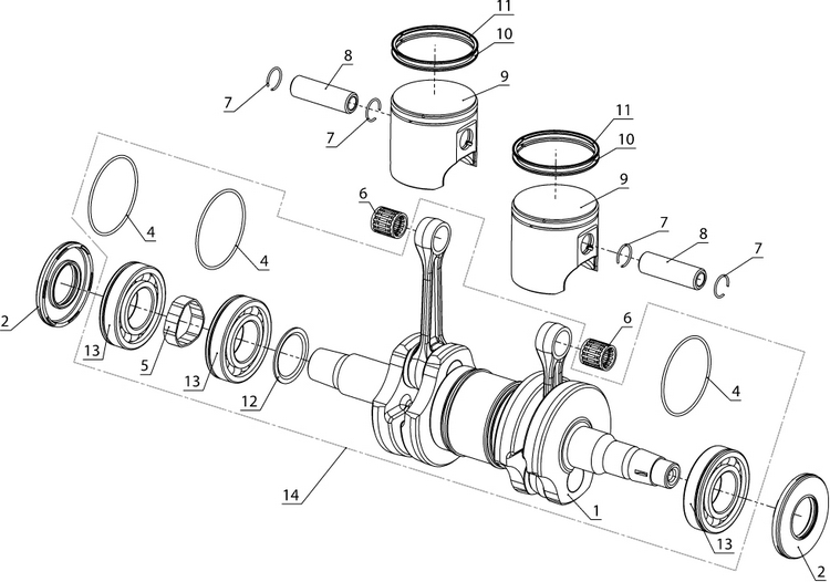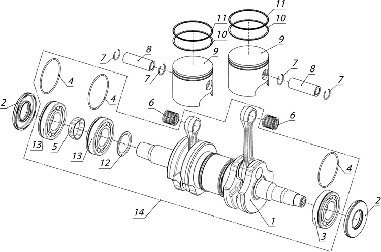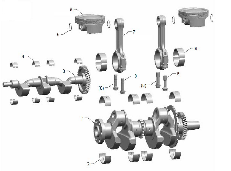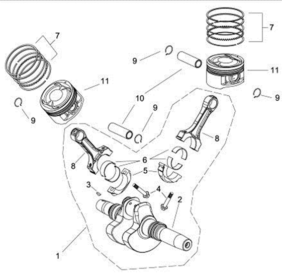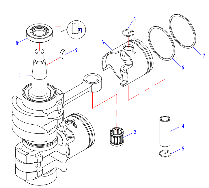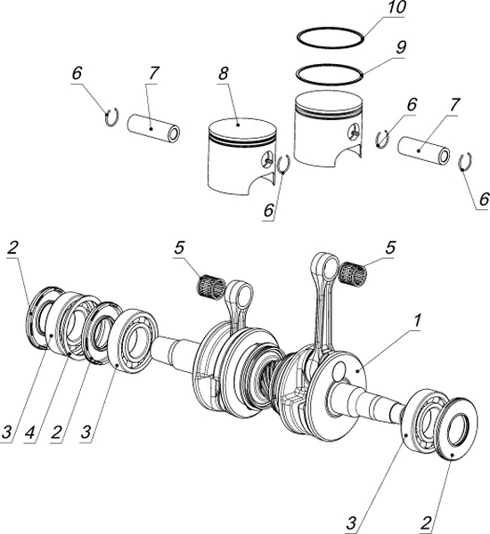 Коленчатый вал, поршни и шатуны 2-х тактного ПЛМ MERCURY 9.9 M TMC Серийный номер от 0N059858 и выше