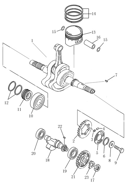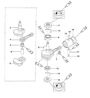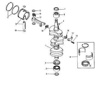 Коленчатый вал, поршни и шатуны 2-Х ТАКТНОГО ПЛМ MERCURY 50EO Серийный номер от 0P017000 до 0P325499