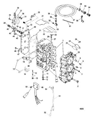 Блок цилиндров и картер (Часть 1) 2-Х ТАКТНОГО ПЛМ MERCURY 55 Серийный номер от 0G290585 до 0G589999