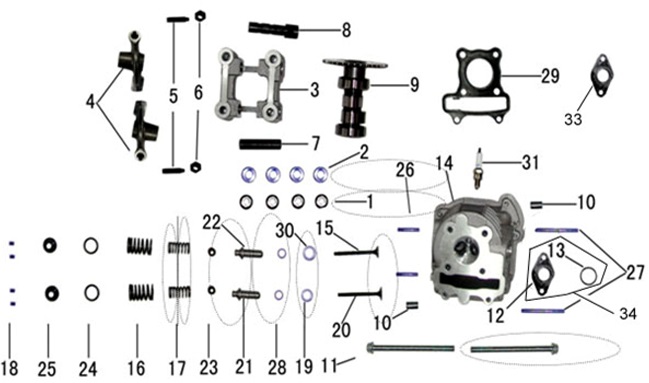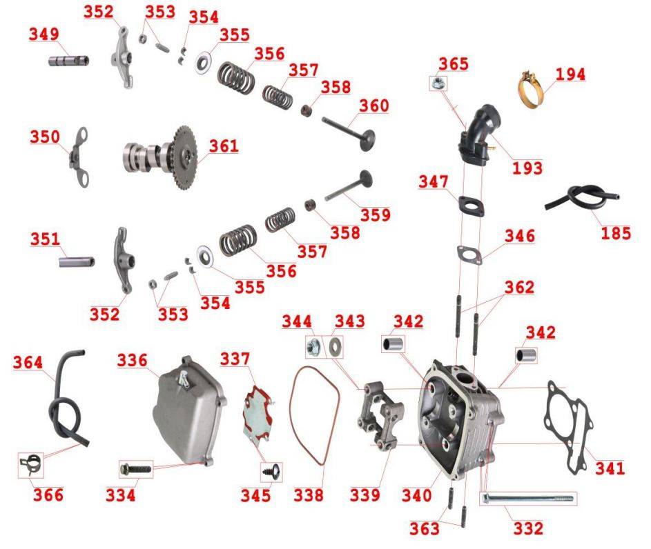 Впускные, выпускные клапаны 4-Х ТАКТНОГО ПЛМ MERCURY 15 Carb(2CYL) Серийный номер от 0R235949 и выше