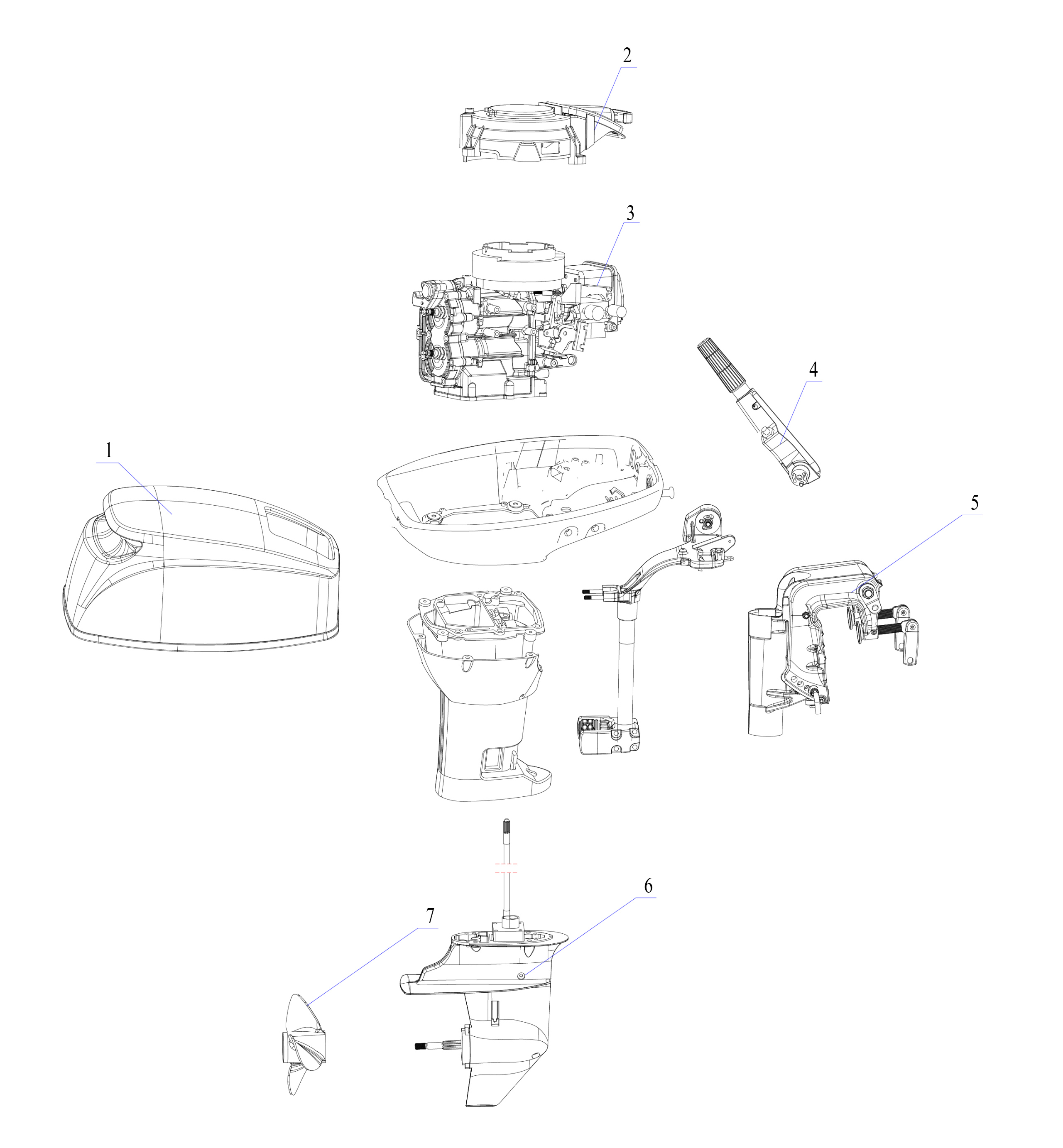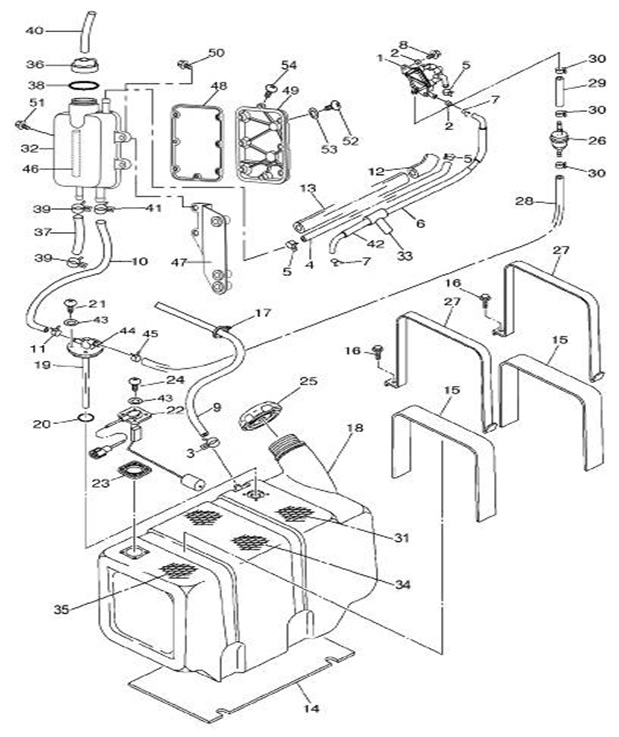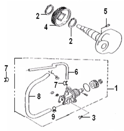 Цилиндры и гидравлические шланги 2-Х ТАКТНОГО ПЛМ MERCURY 50EO Серийный номер от 7208333 до 0A721307