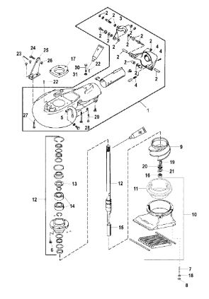 Компоненты гидроподъема (Часть 2) 4-Х ТАКТНОГО ПЛМ MERCURY 30 Серийный номер от 0P153500 до 0P400999