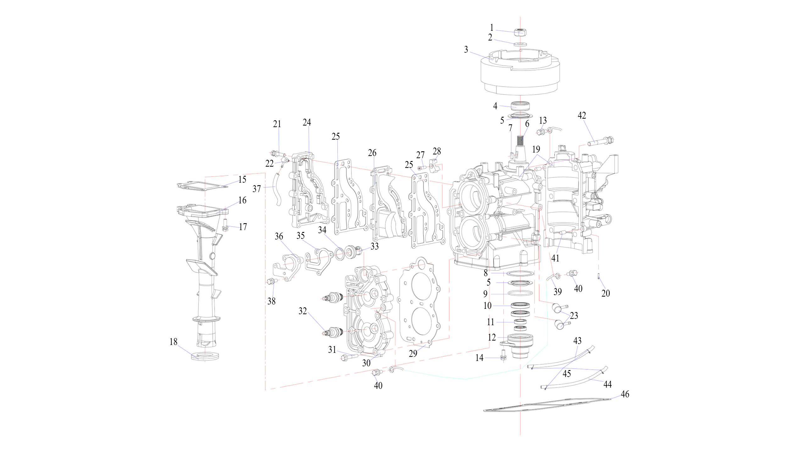 Корпус шестерни (приводной вал 2.31:1) 2-Х ТАКТНОГО ПЛМ MERCURY 90 Серийный номер от 1B000001 и выше